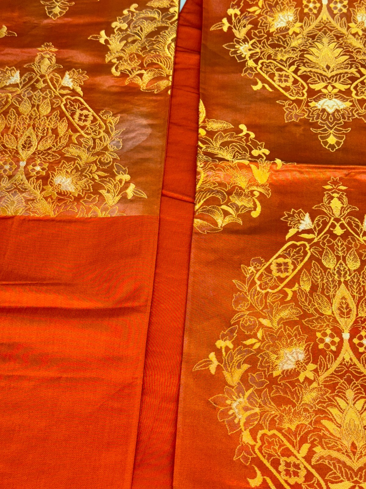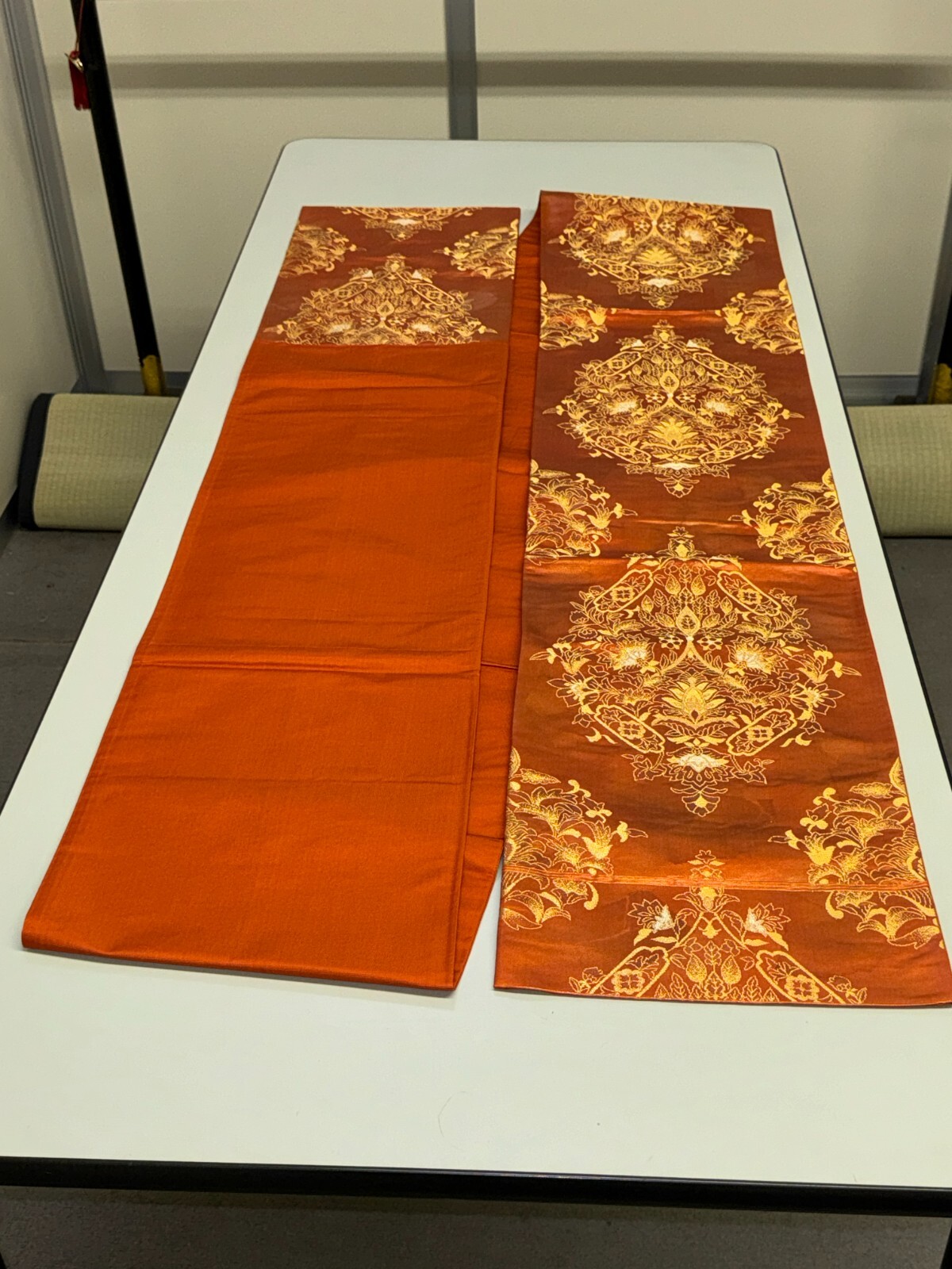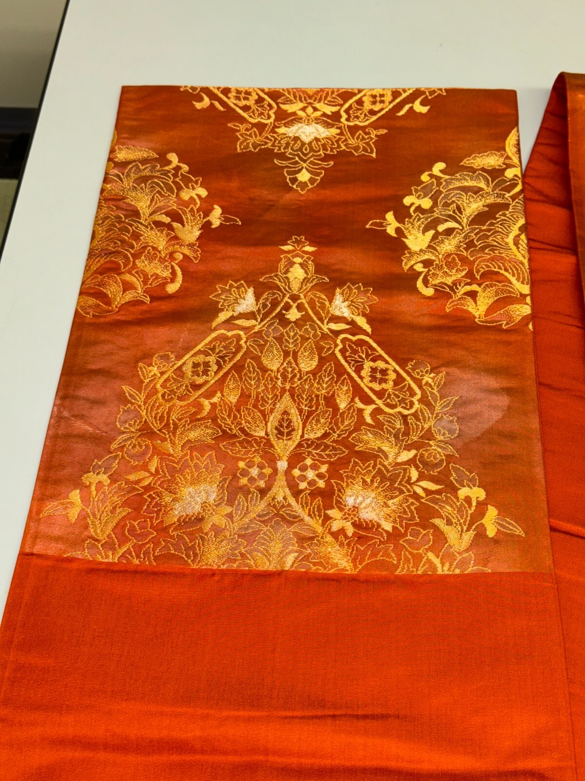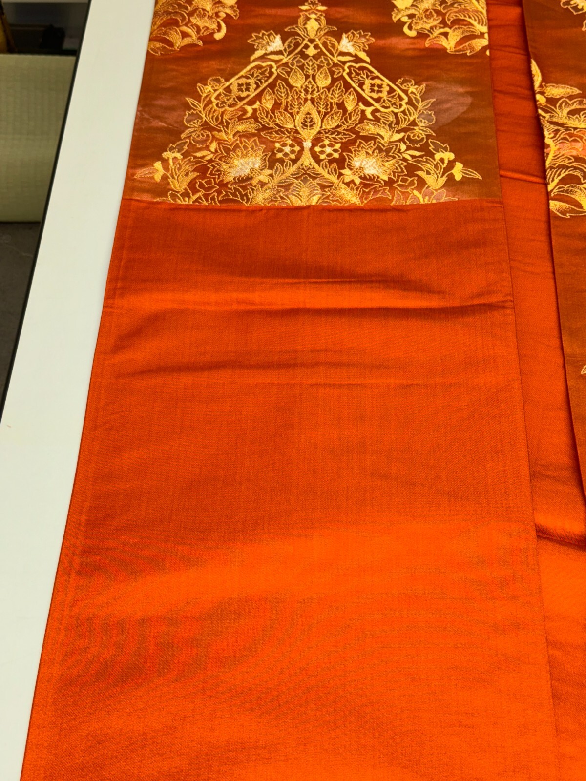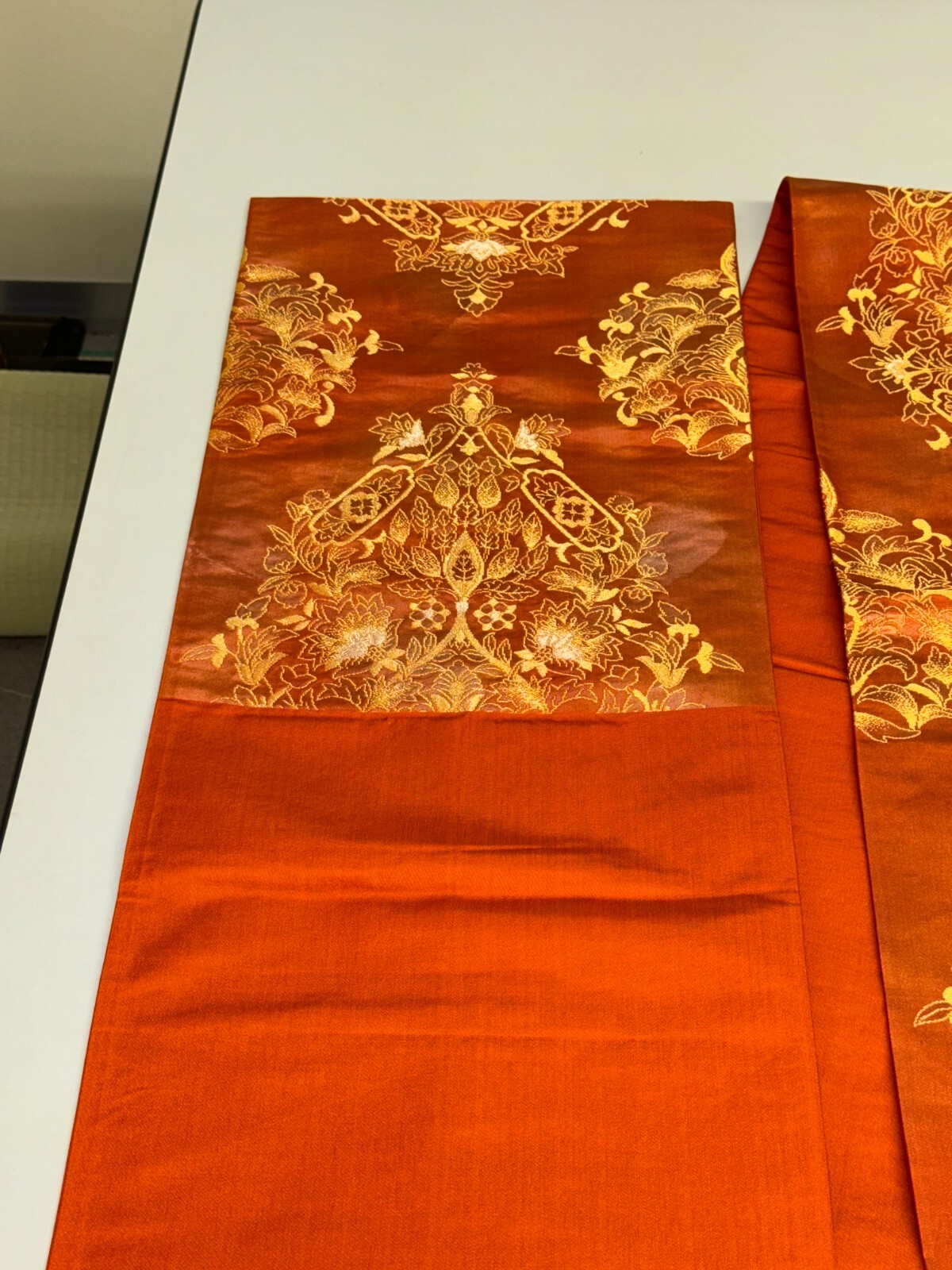 как выглядит Japanese Vintage Kimono Fukuro Obi silk orange expensive embroidery 164.5x12.2in фото