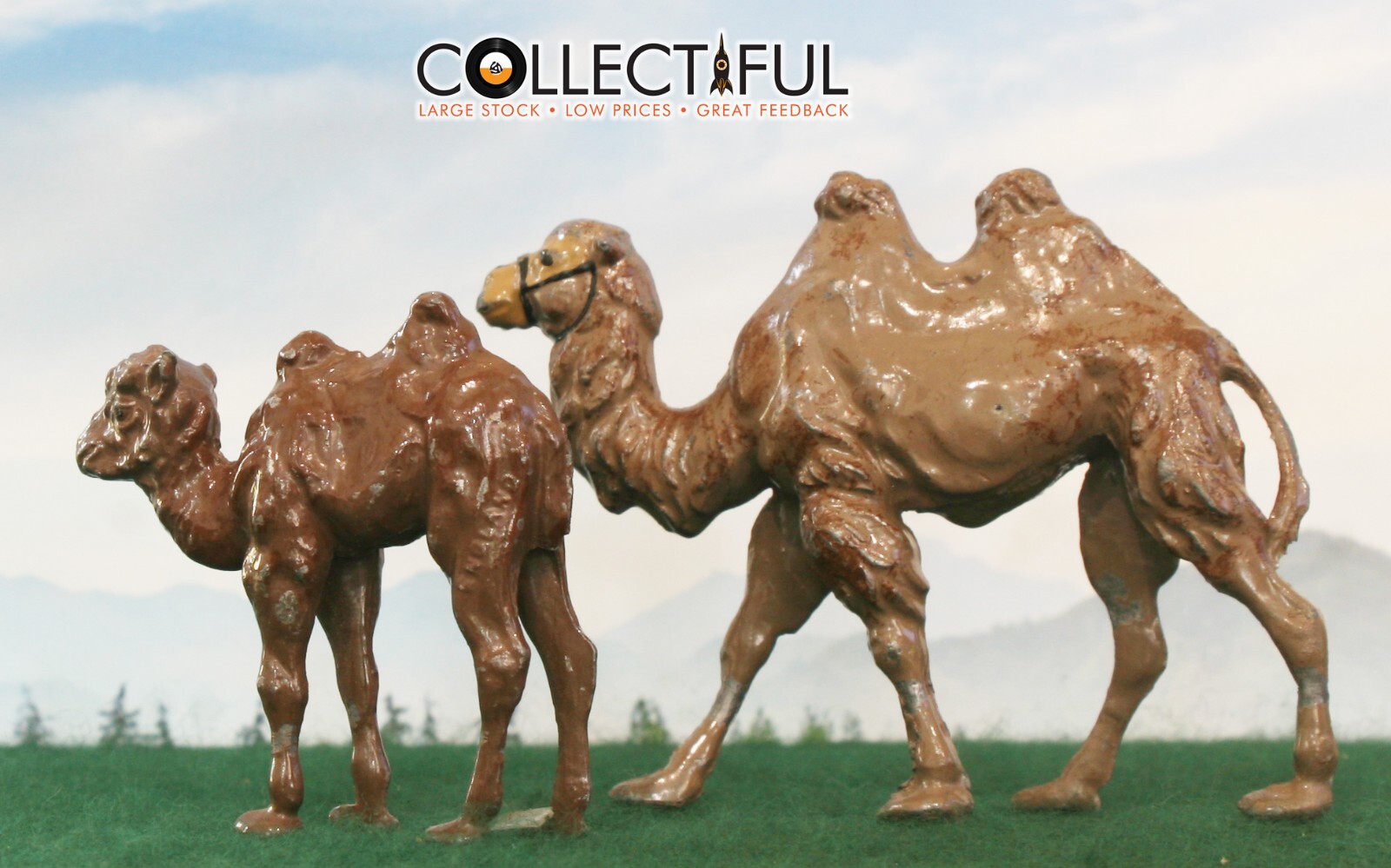 BRITAINS - CAMEL MOTHER CALF - VINTAGE LEAD ZOO FIGURES X2 NICE L49