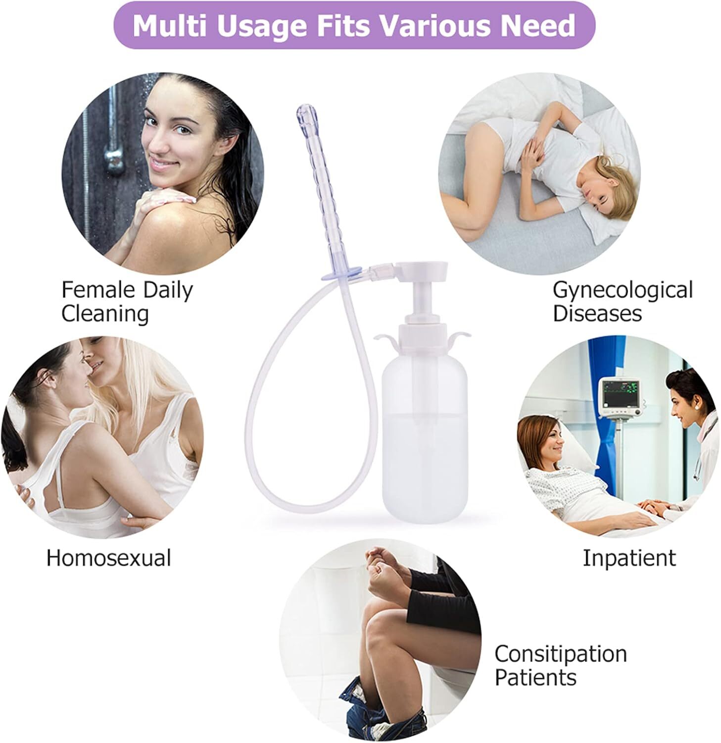 300ml Pump Action Douche Enema Bottle with Nozzle Vaginal Anal Cleaning Kit
