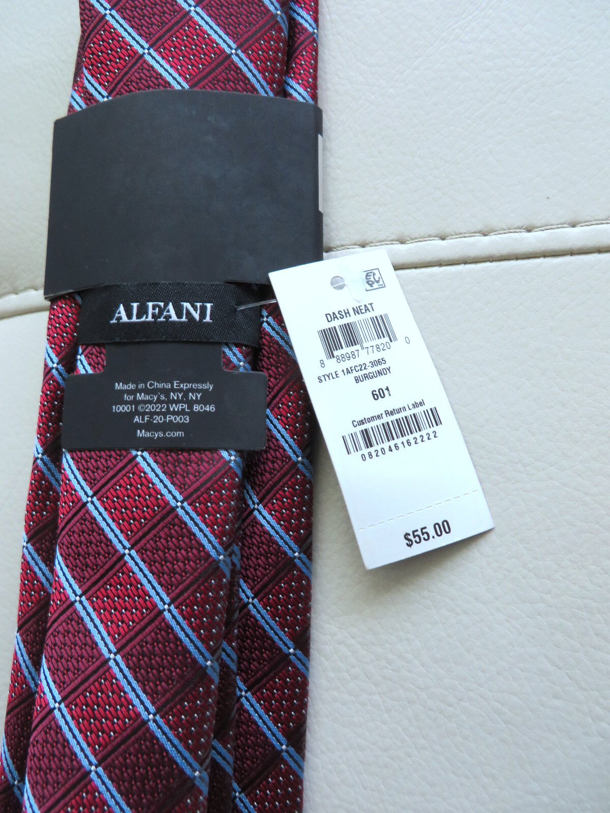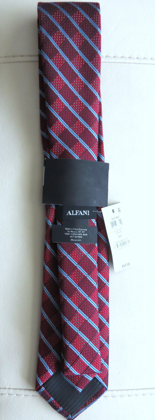Club Room Men's Silk Neck Tie, Burgundy with Blue stripes, NWT 55.00