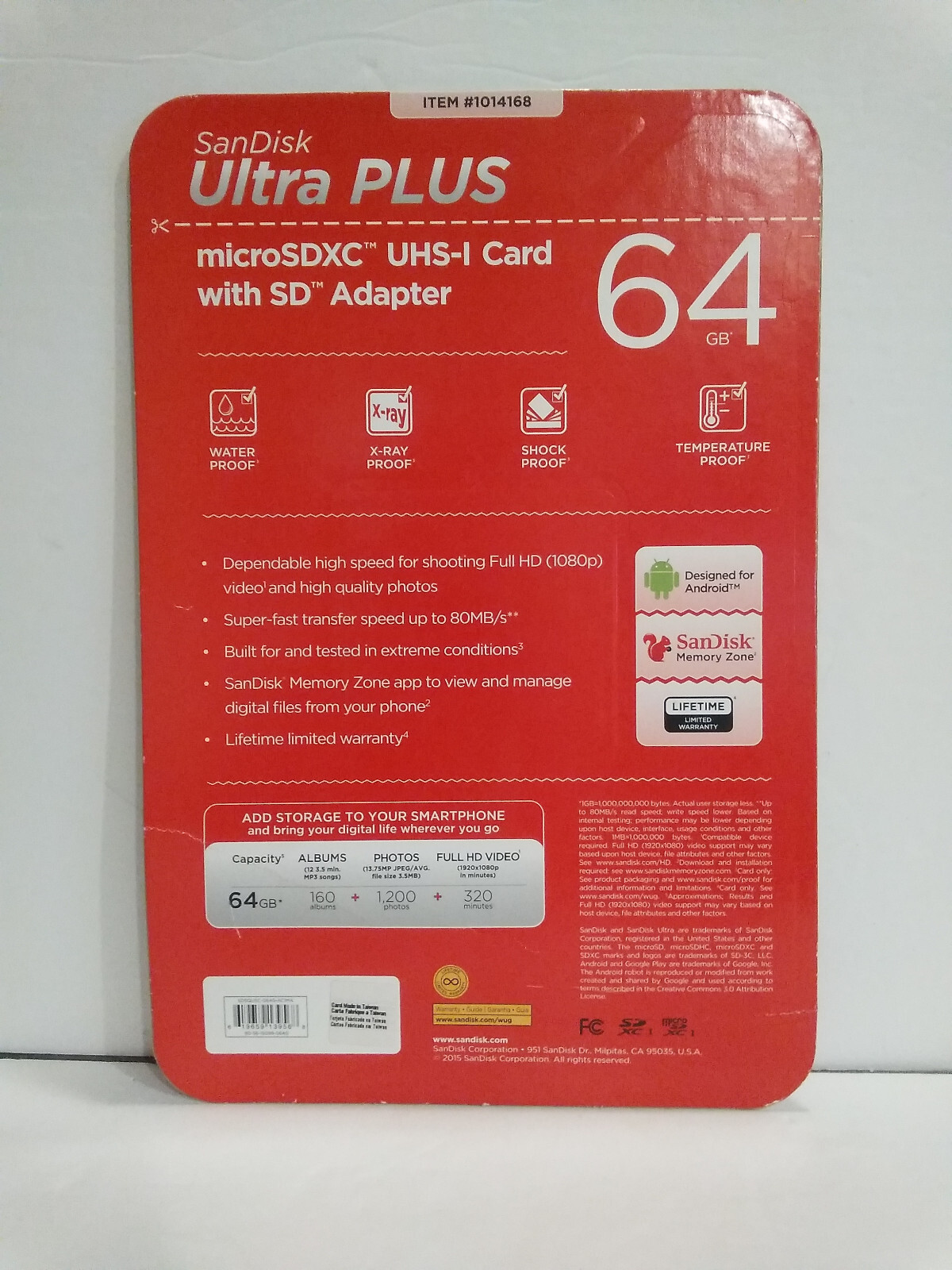 как выглядит SanDisk Ultra PLUS 64GB 80 MB/s Class10 microSDXC UHS-1 MemoryCard w/ SD Adapter фото