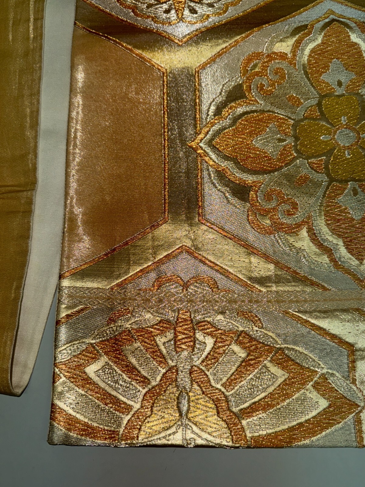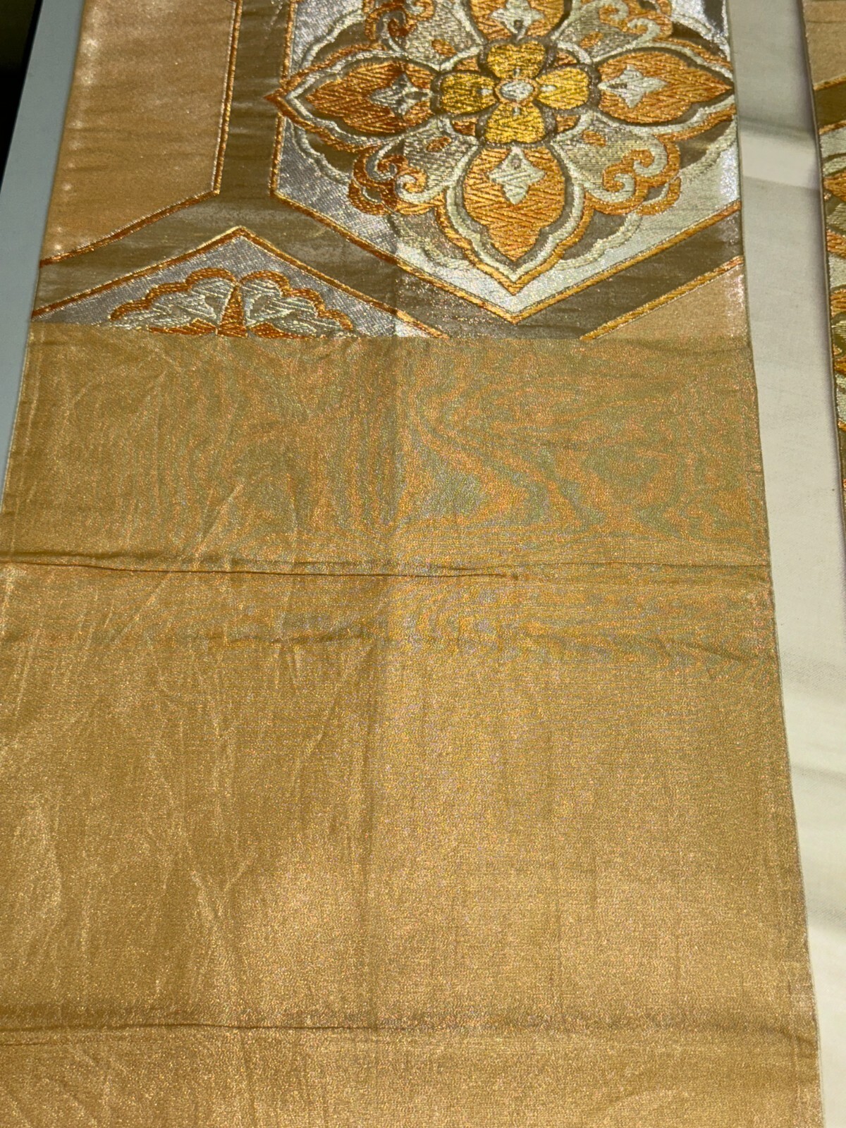 как выглядит Japanese Vintage Kimono Fukuro Obi silk gold expensive embroidery 160.6x12.2in фото