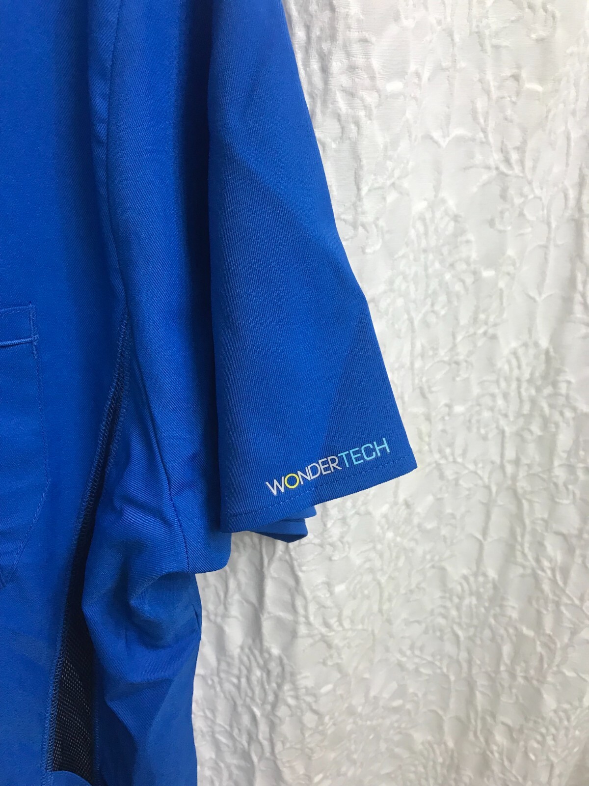как выглядит Wondertech Blue Scrub Top Short Sleeve Size L Double Two Front Pocket фото