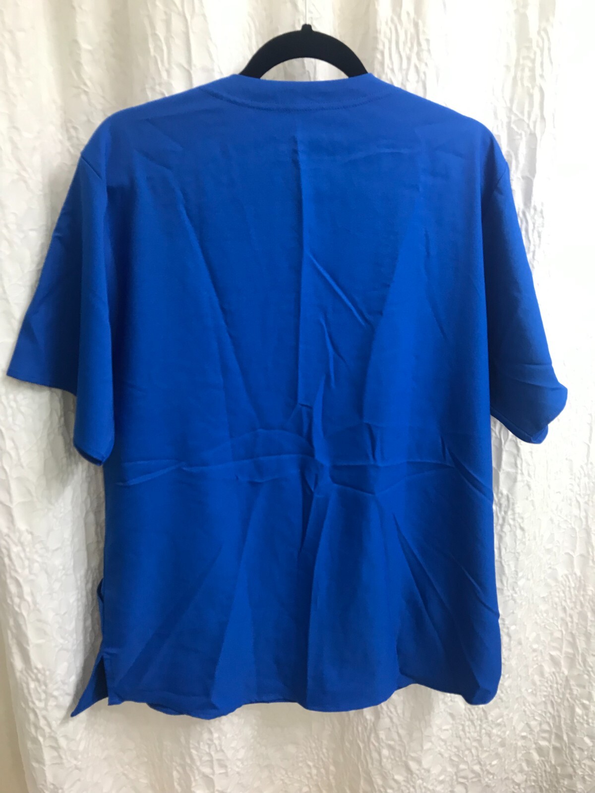 Wondertech Blue Scrub Top Short Sleeve Size L Double Two Front Pocket
