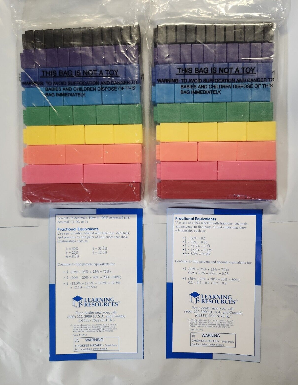 как выглядит Learning Resources Lot of 2 Set/51 Decimal Tower Cubes Percent Tower Cubes VG фото