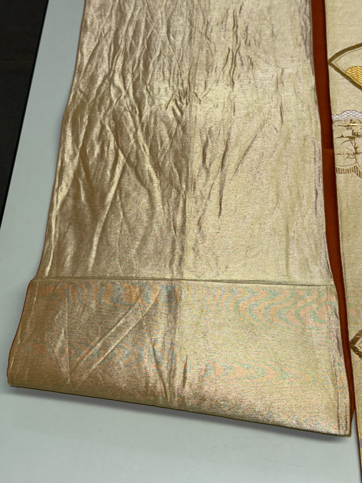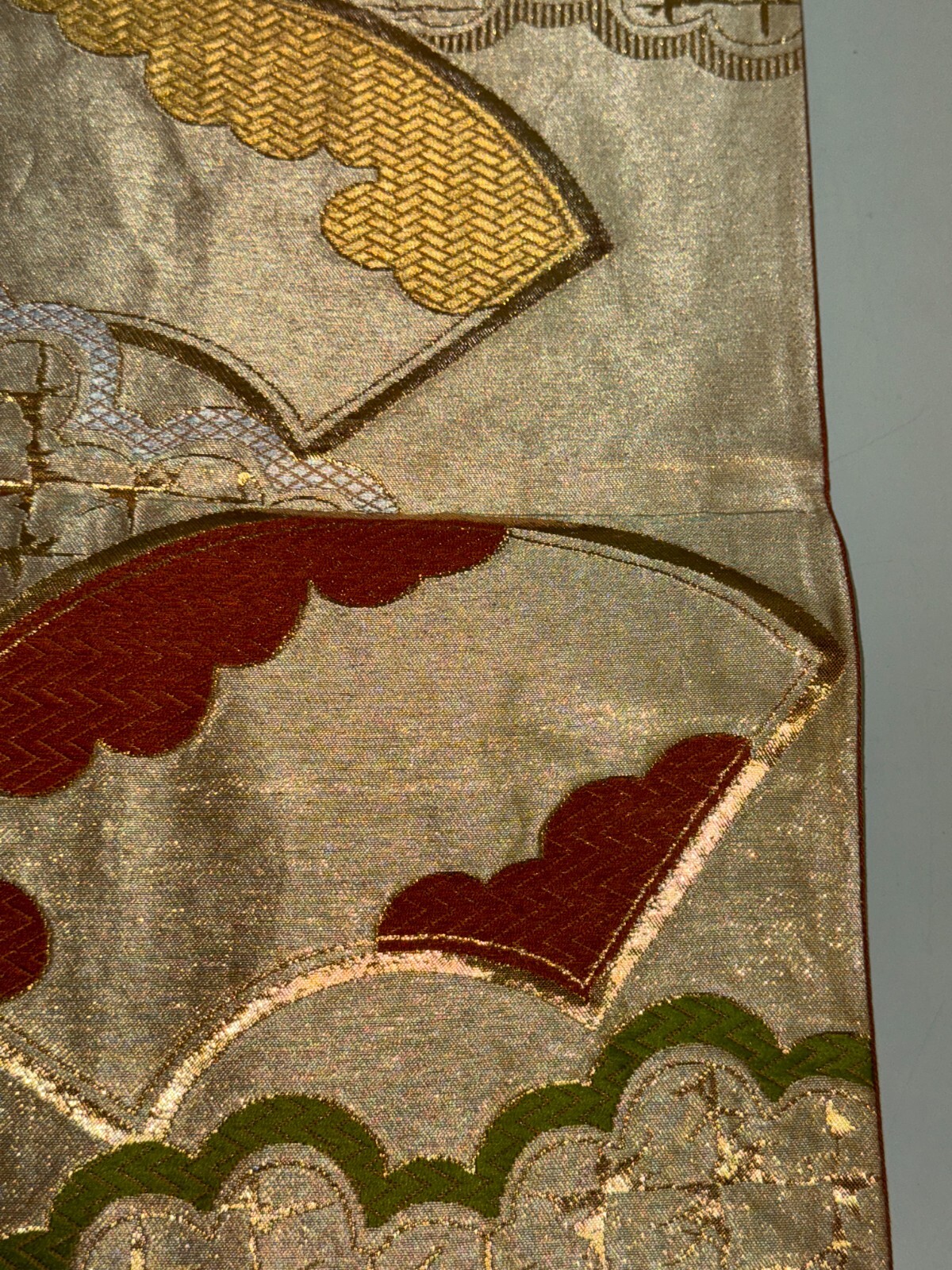 Japanese Vintage Kimono Fukuro Obi silk gold expensive Embroidery 158.2x12.2in