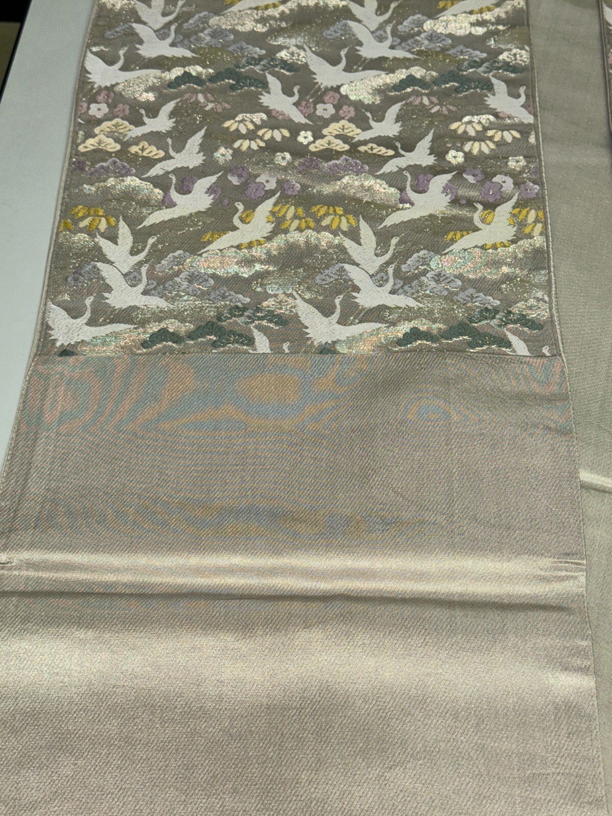 как выглядит Japanese Vintage Kimono Fukuro Obi silk Grey expensive Embroidery 167.7x11.8in фото