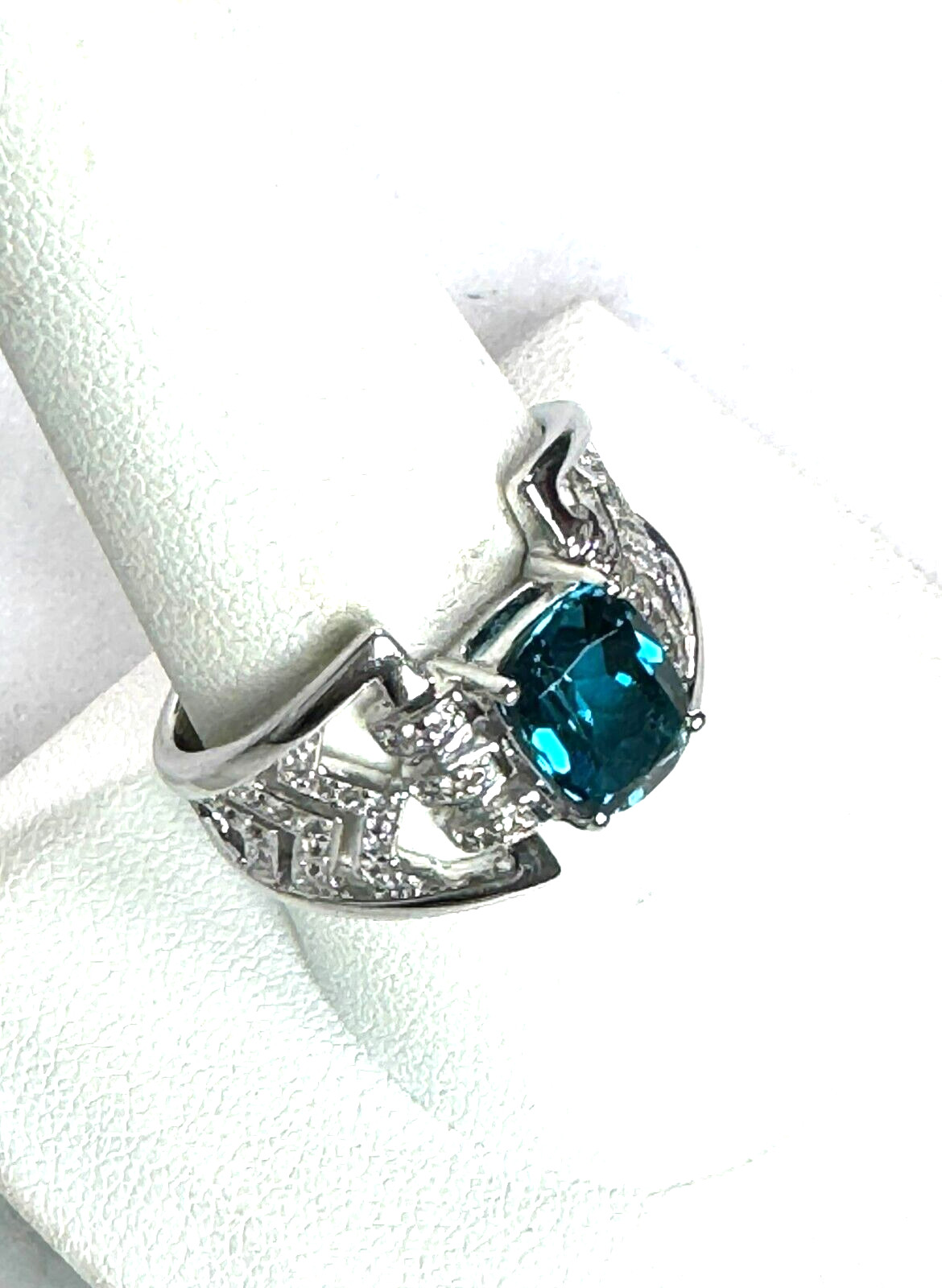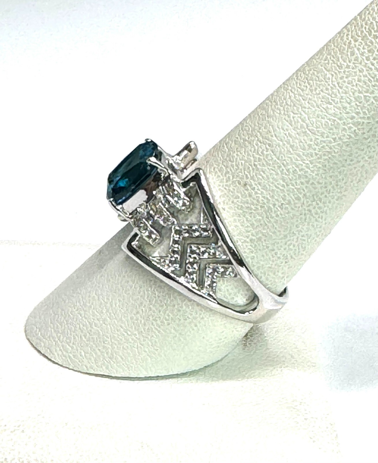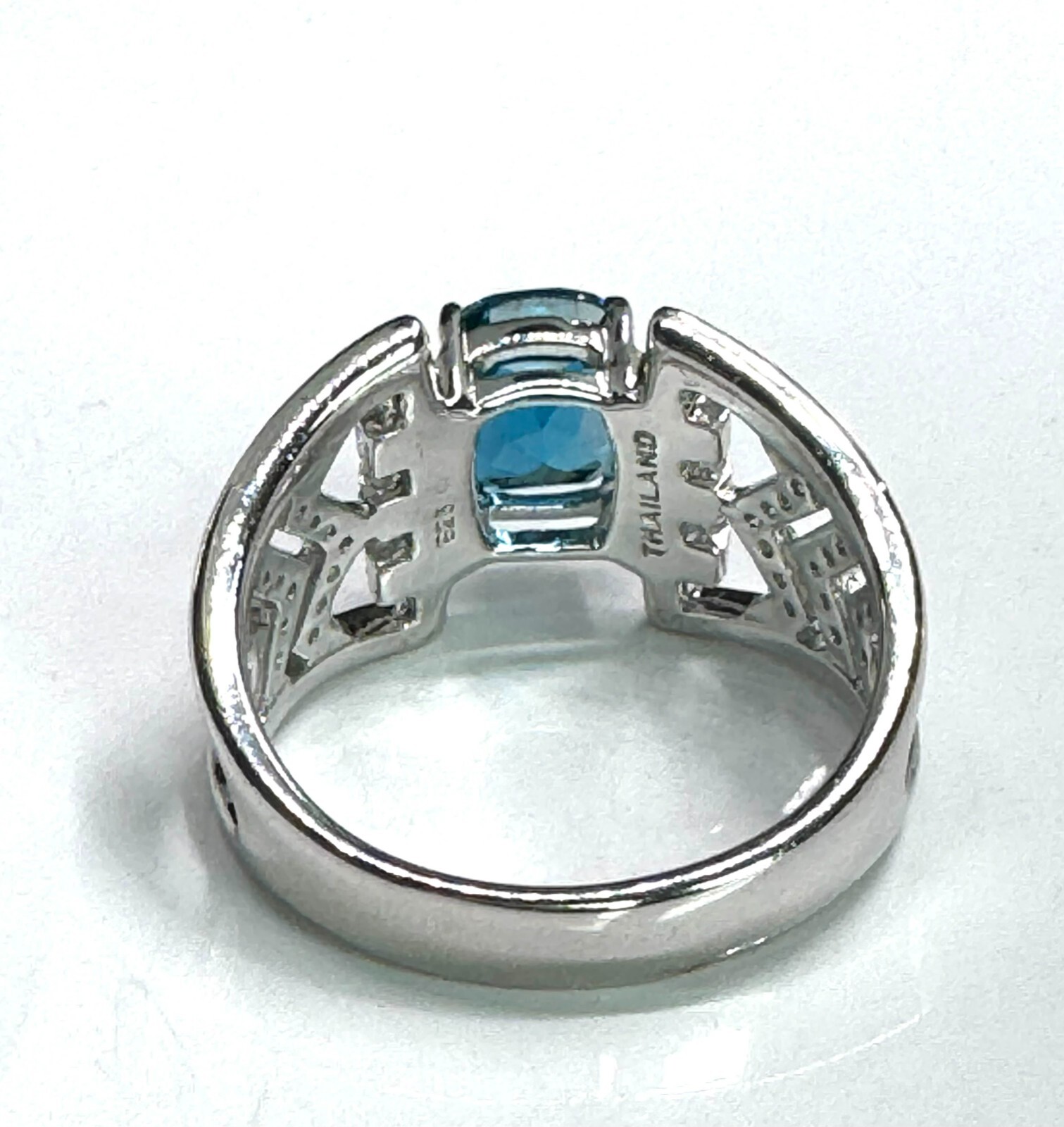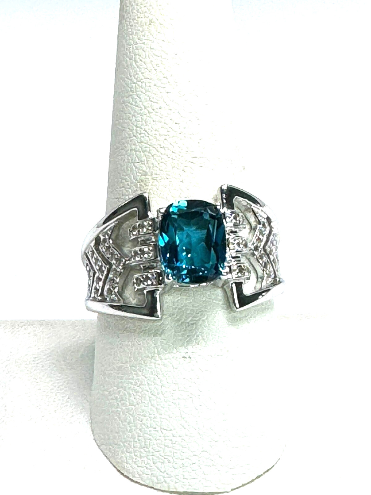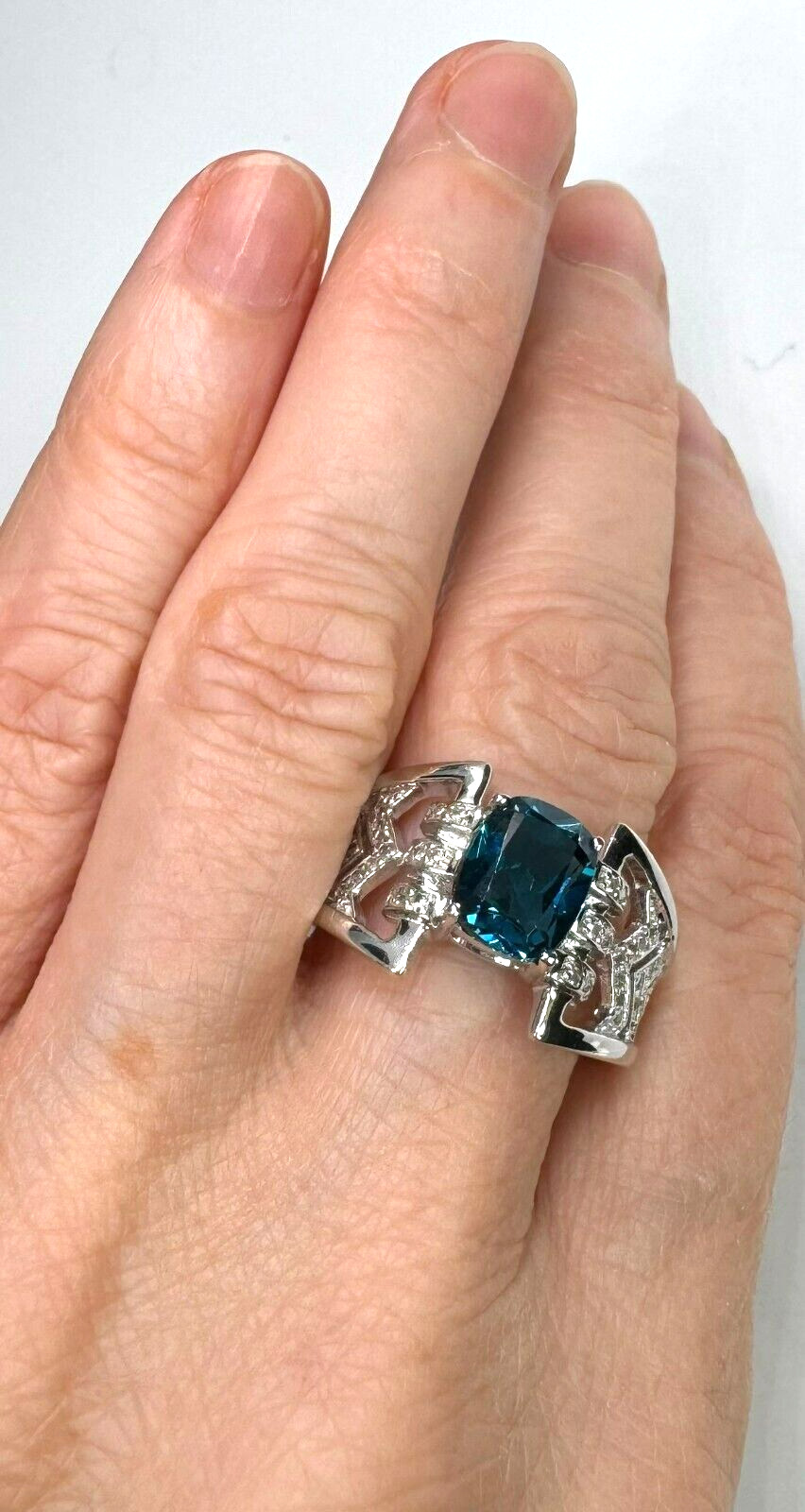 как выглядит 925 STERLING SILVER LONDON BLUE AND COLORLESS TOPAZ RING SIZE 9.75 фото