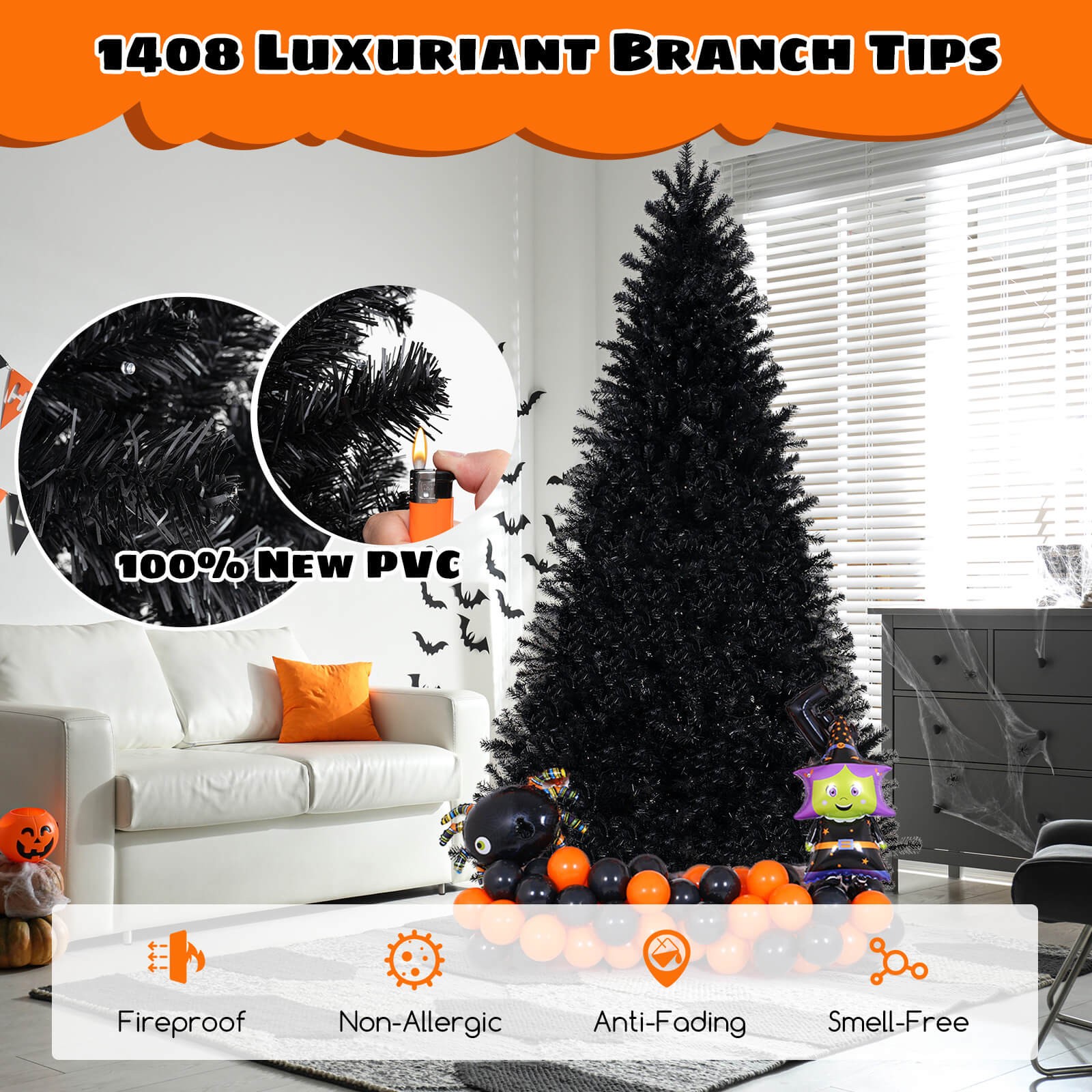 8' Halloween Tree Artificial Decoration Tree w/1408 Branch Tips 6 Lighting Modes
