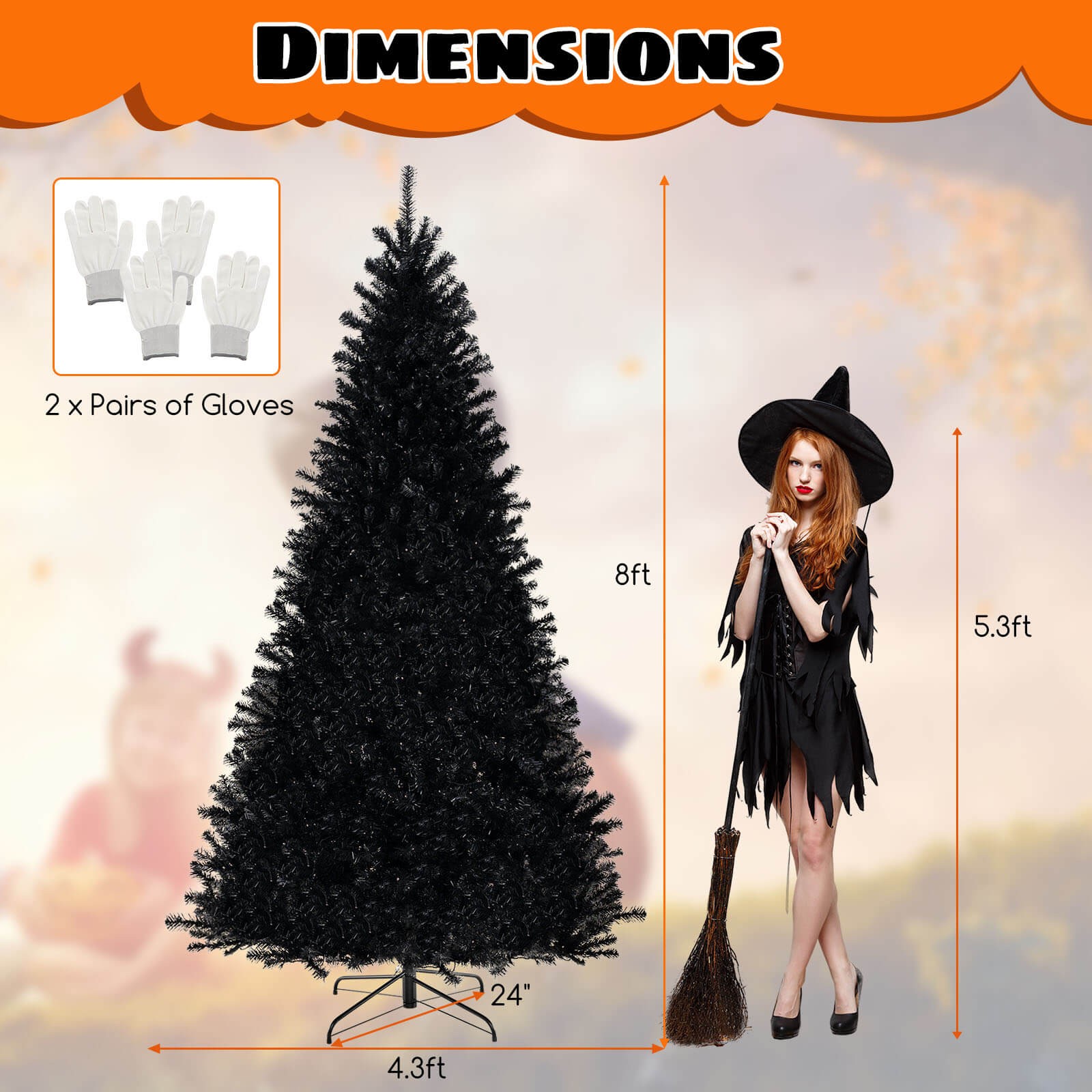 Set Includes: 1 x Halloween Tree, 2 x Pairs of Gloves, 1 x User Guide