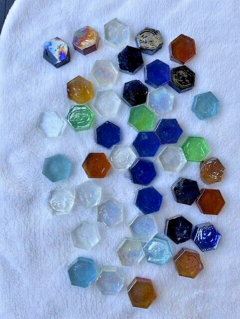 Lot of Iridescent Glass Squares, Hexagons and Ovals. And One Bag of Sea Glass