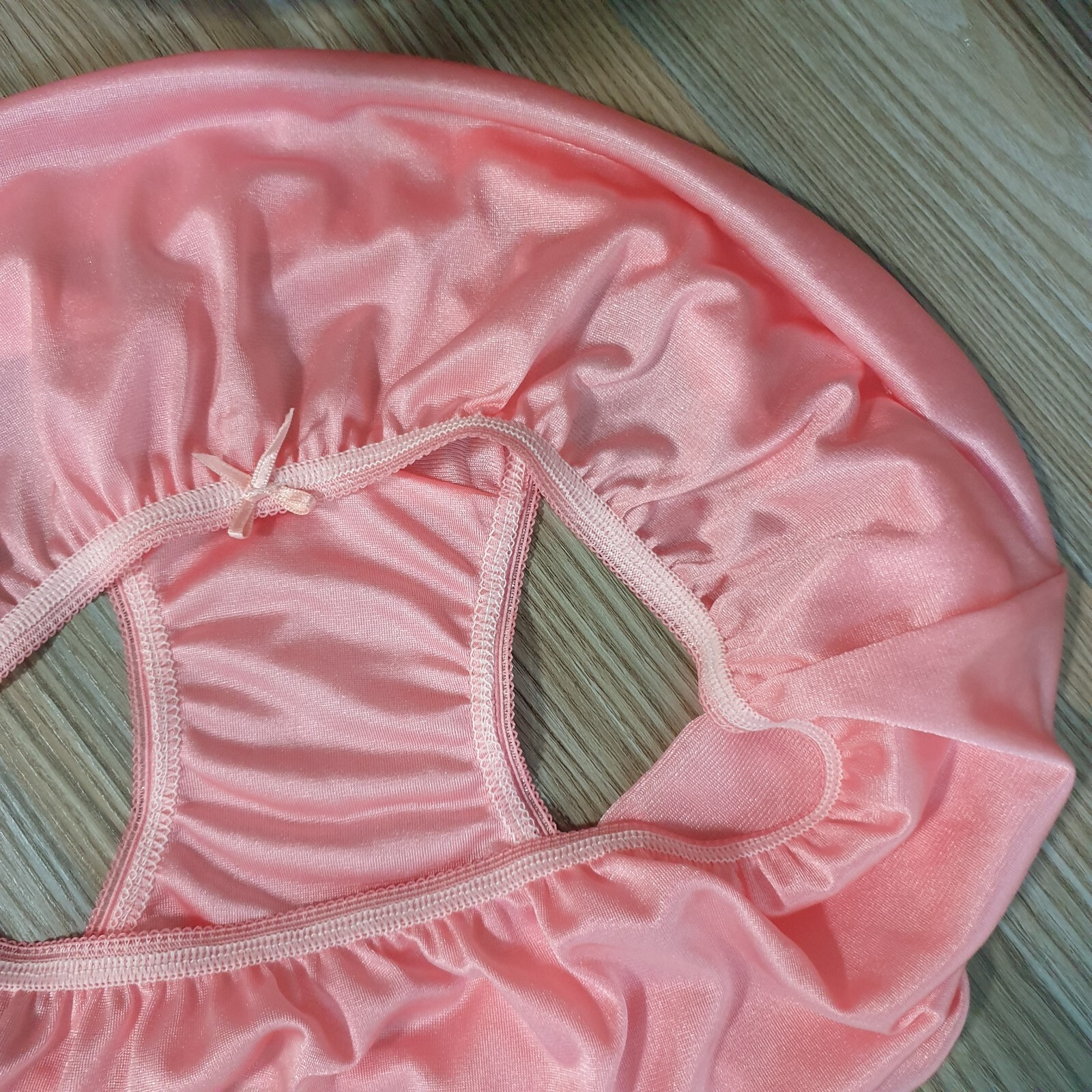 как выглядит Vintage Slippery Nylon Panty Sissy Peach Pink Granny Brief Size 9-10 Hip 40-50" фото