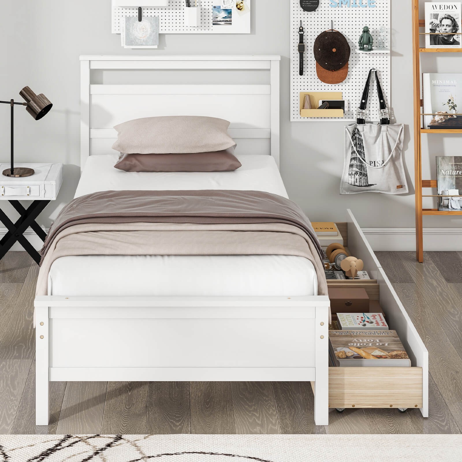 Twin Size Platform Bed w/Drawers 2 Pull-out Drawers Headboard Footboard