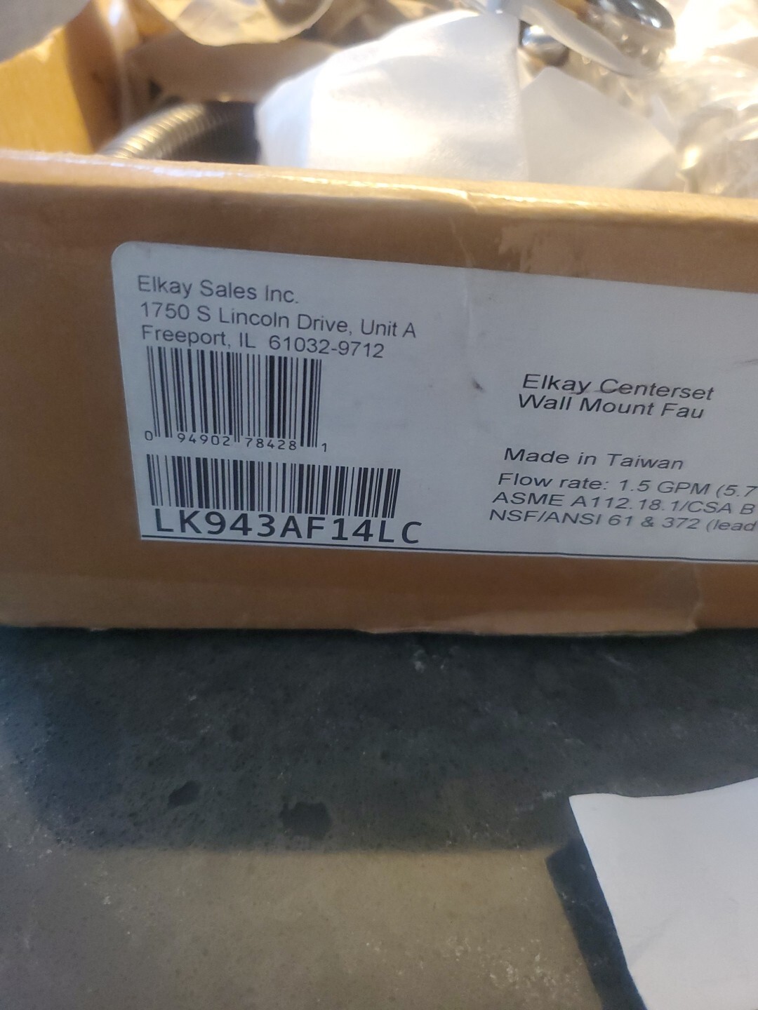 ELKAY LK943AF14LC CENTERSET WALL MOUNT FAUCET CHROME FINISH FLEXIBLE HOSE