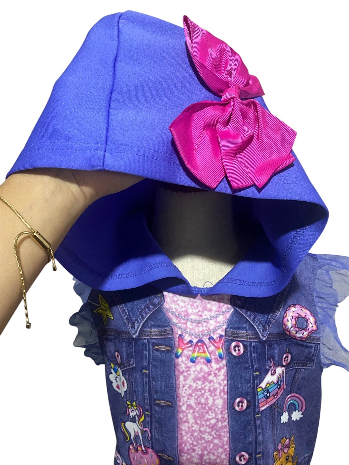 как выглядит Jo Jo Siwa blue/pink bow hoodie dress girls Nickelodeon brand size M 7/8 фото