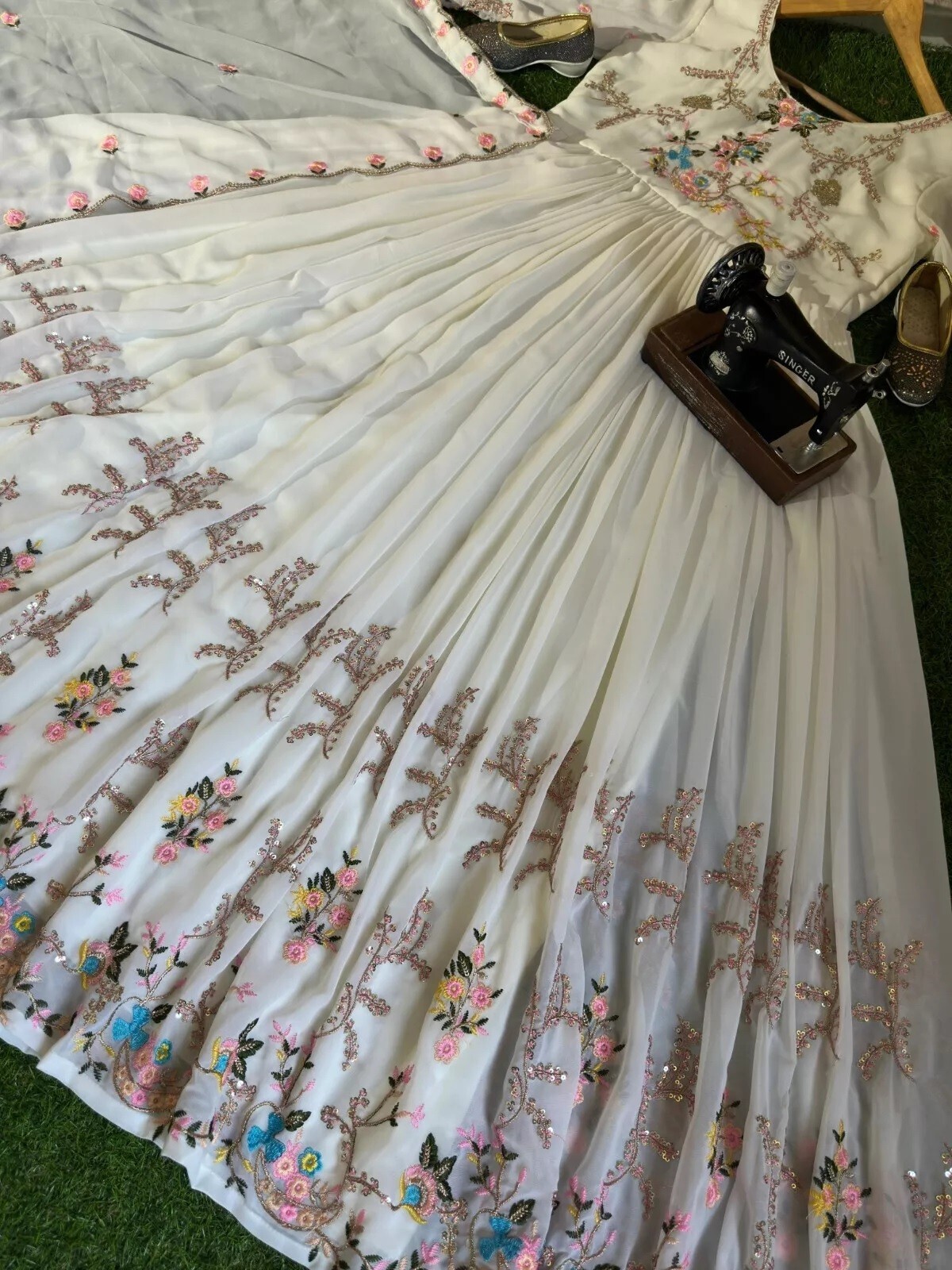 Gown Fabric: Pure Faux Georgette With Peds And Embroidery Multi Thread........