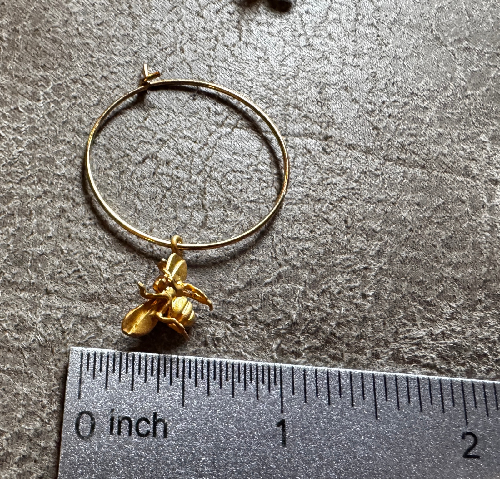 как выглядит Yellow Gold Hoop Earrings with Dangling Bee фото