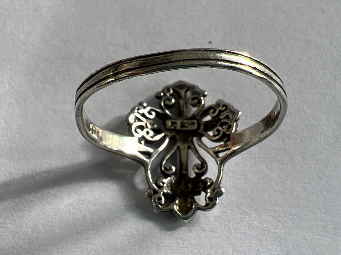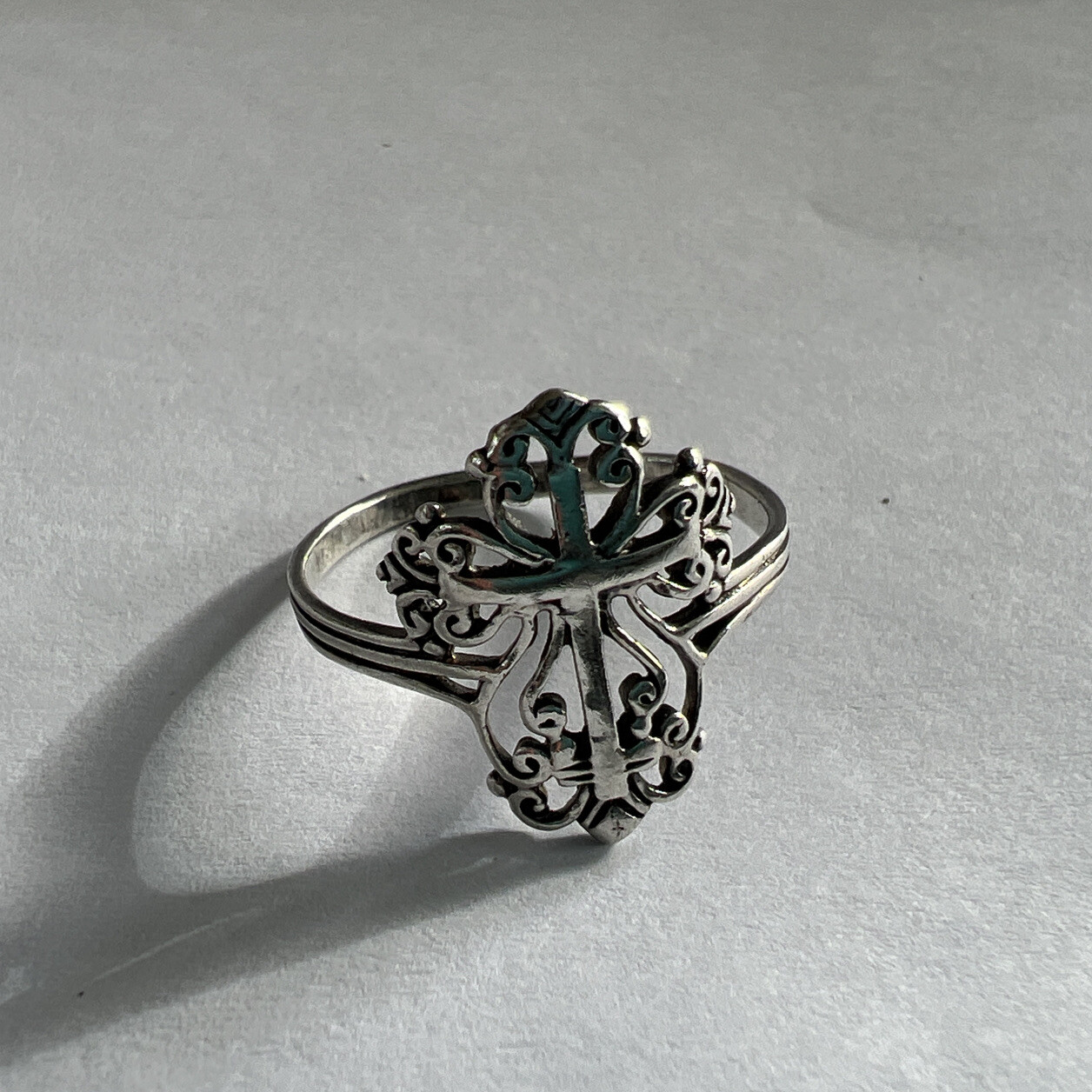 как выглядит Vintage Sterling Silver Filigree Religious Cross Ring Size 12 Hallmarked "JC925 фото