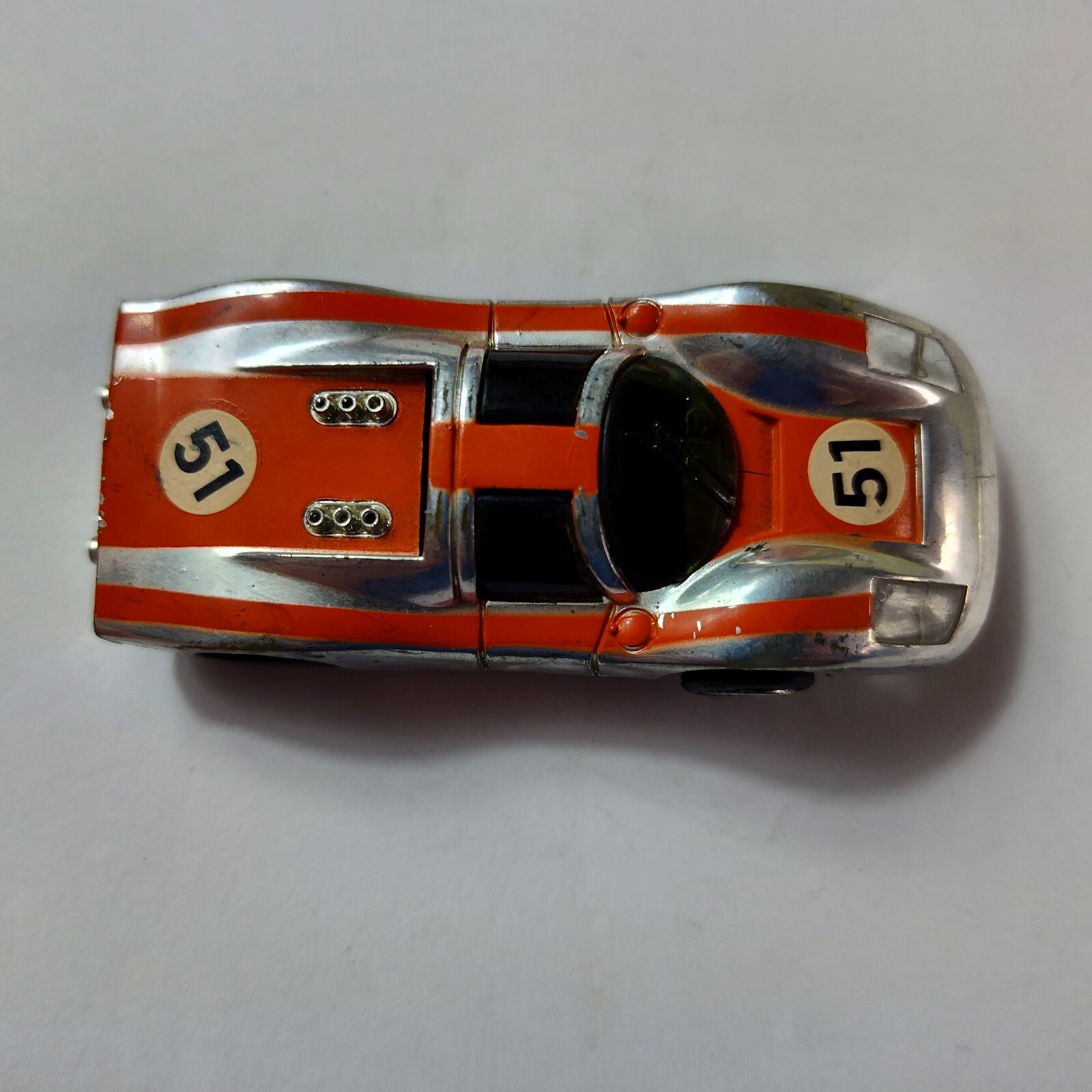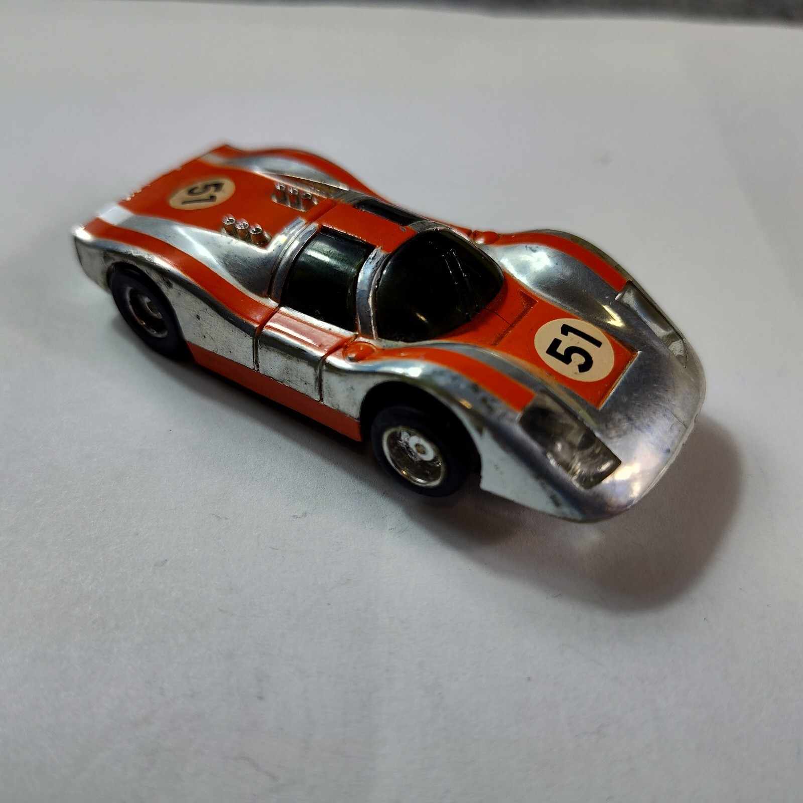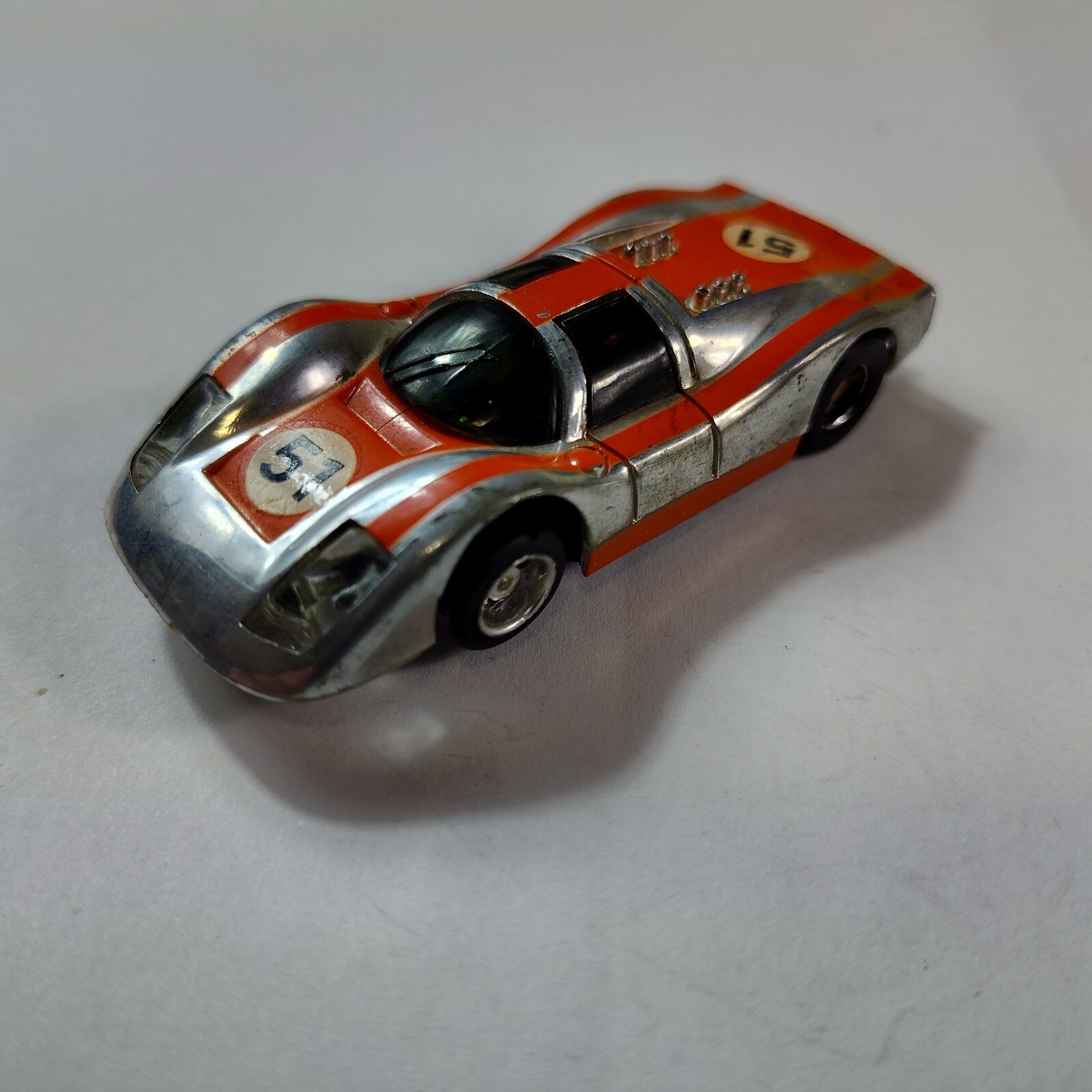 Tyco Slot Car Porsche 908 51 Orange Chrome Orginal Curve Hugger Chassis Vintage