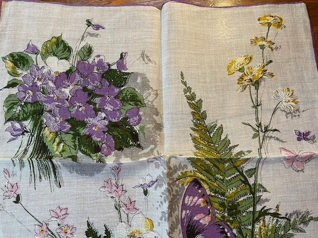 как выглядит Vintage Unused Colette Hanky Butterfly Strawberries Ferns Violets NOS Handrolled фото