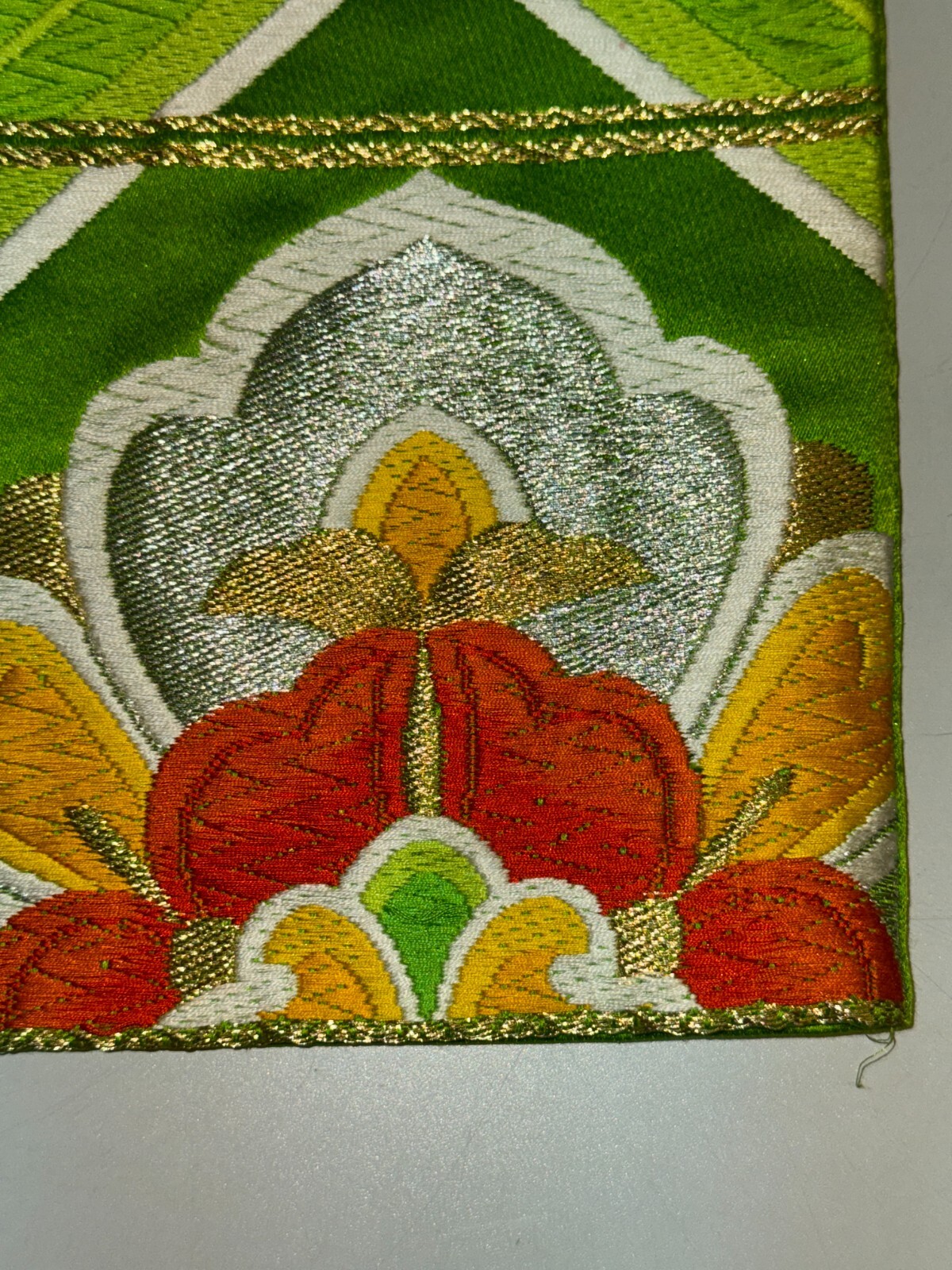 Japanese Vintage Kimono Fukuro Obi silk Green embroidery expensive 162.2x11.8in