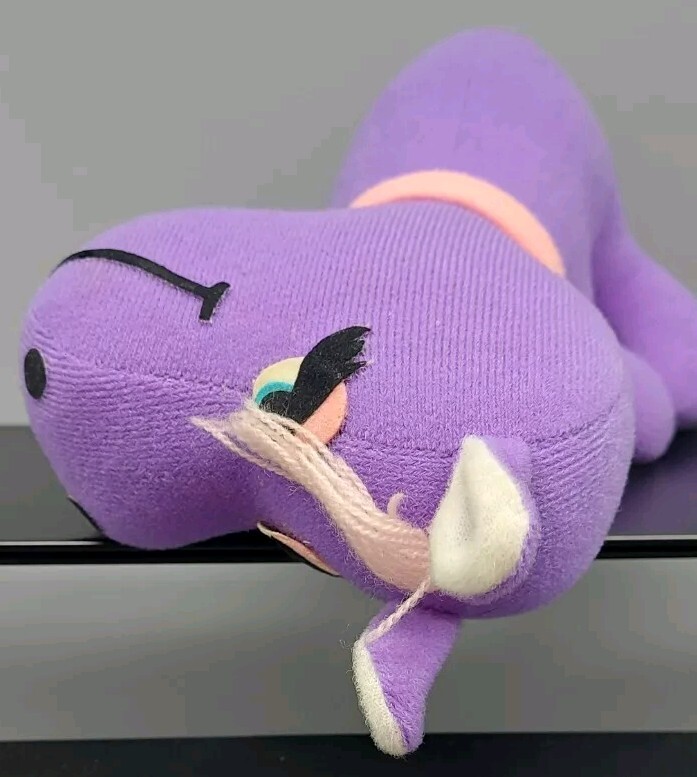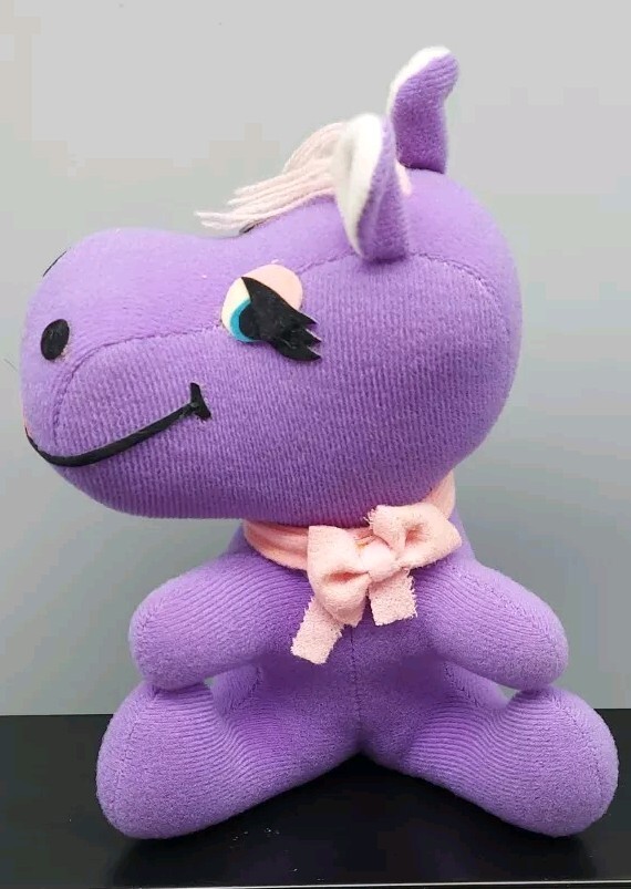 как выглядит Vintage 1975 Retro Dakin Dream Pets Purple Hippo Mid Century Lipstick Eyelashes фото