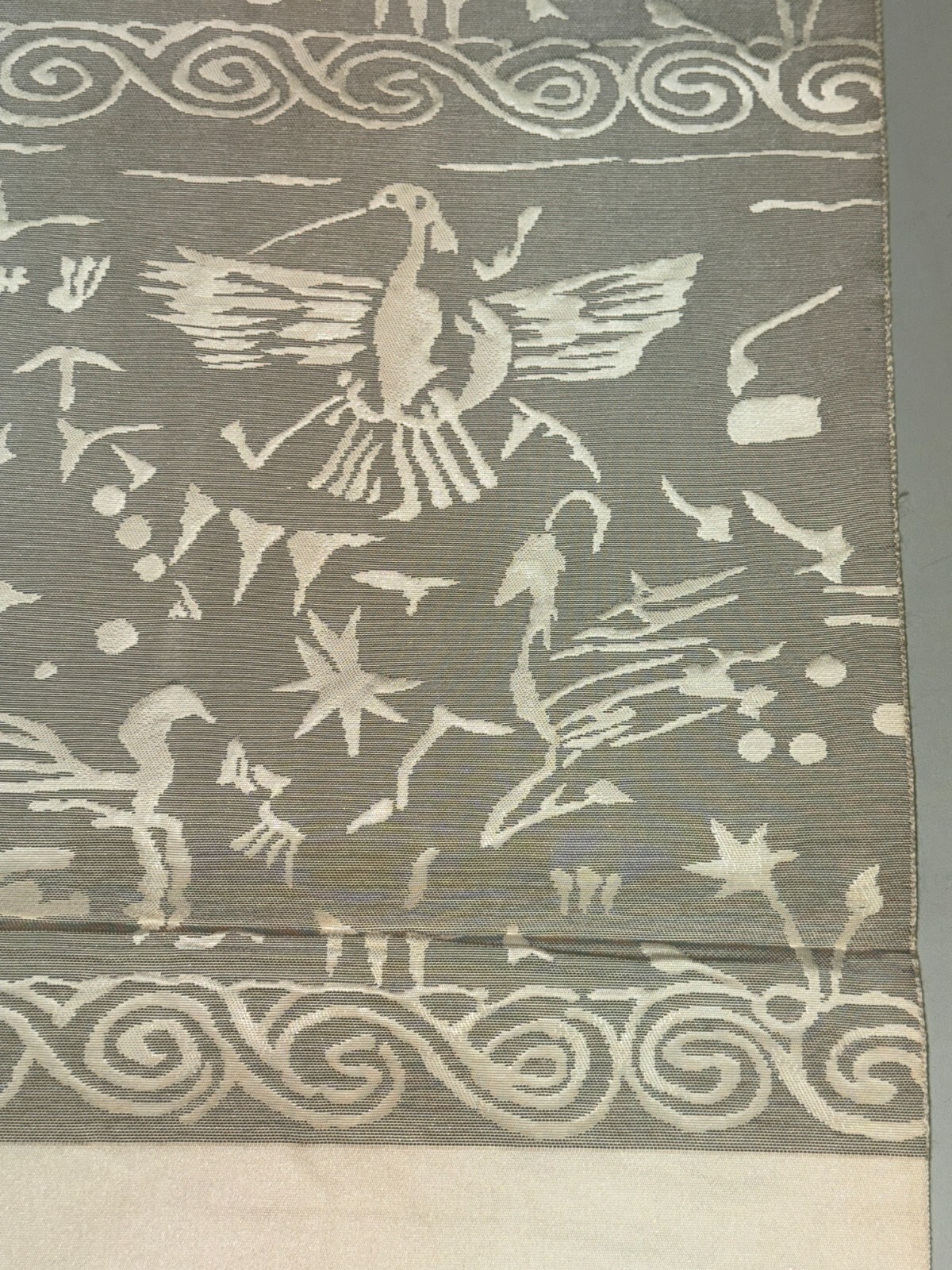 Japanese Vintage Kimono Fukuro Obi silk Grey expensive Tradition 141.7x12.2in