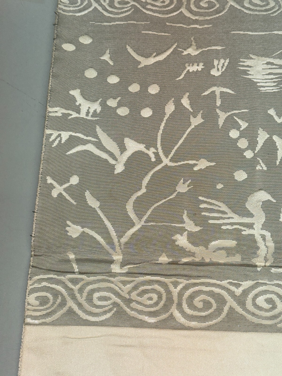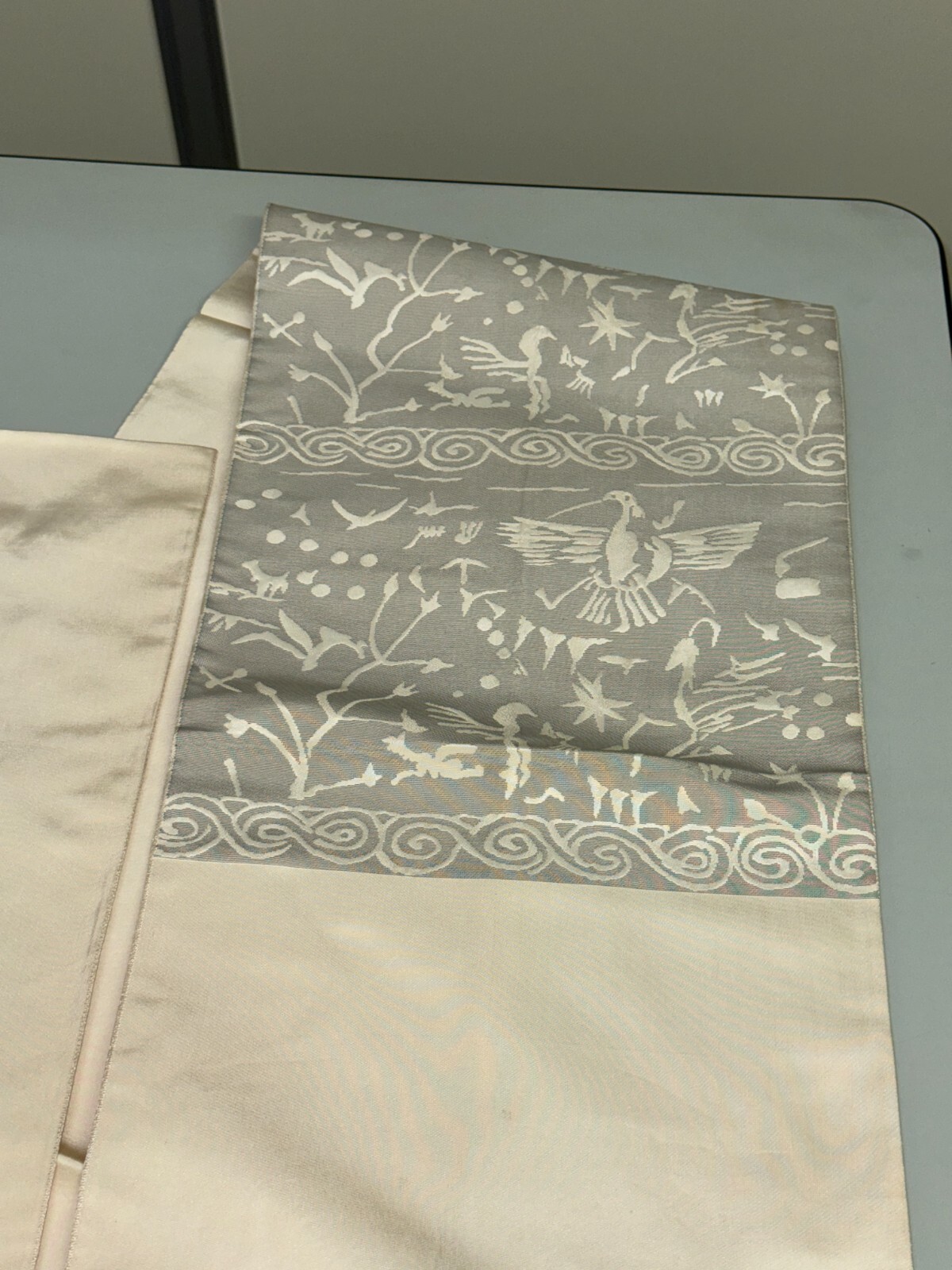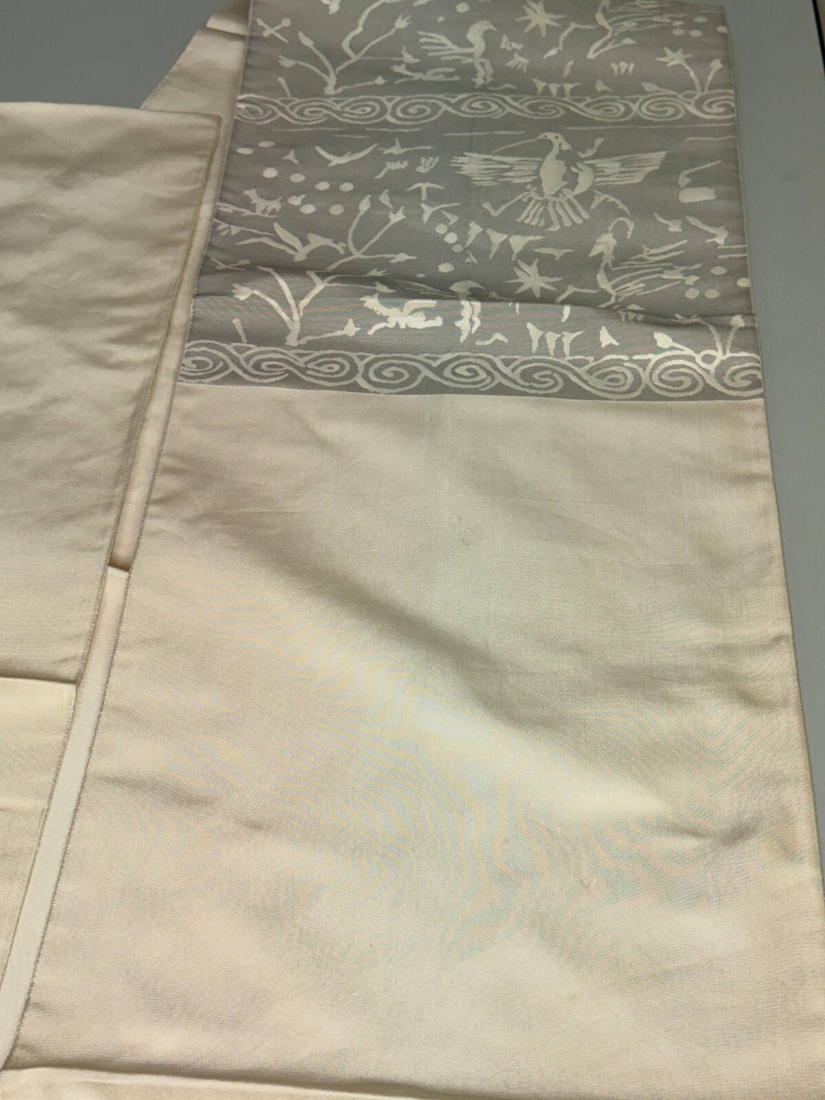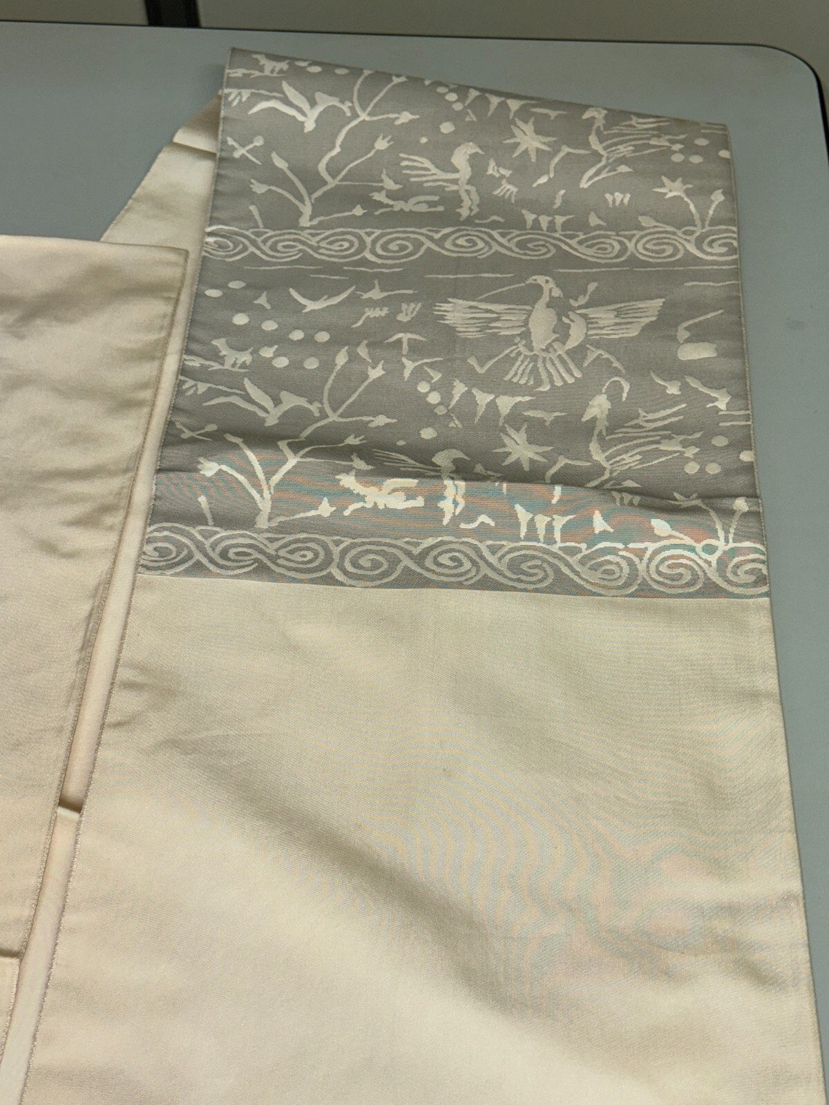 как выглядит Japanese Vintage Kimono Fukuro Obi silk Grey expensive Tradition 141.7x12.2in фото