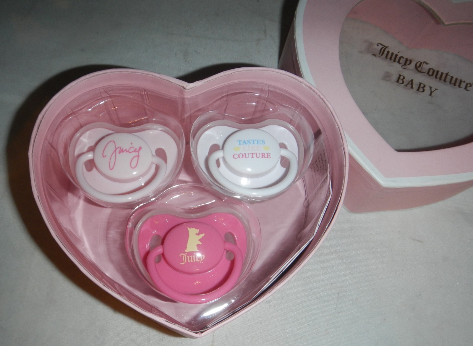 Juicy Couture Girls Three 3 Pack Baby Pacifier Binky Gift Set