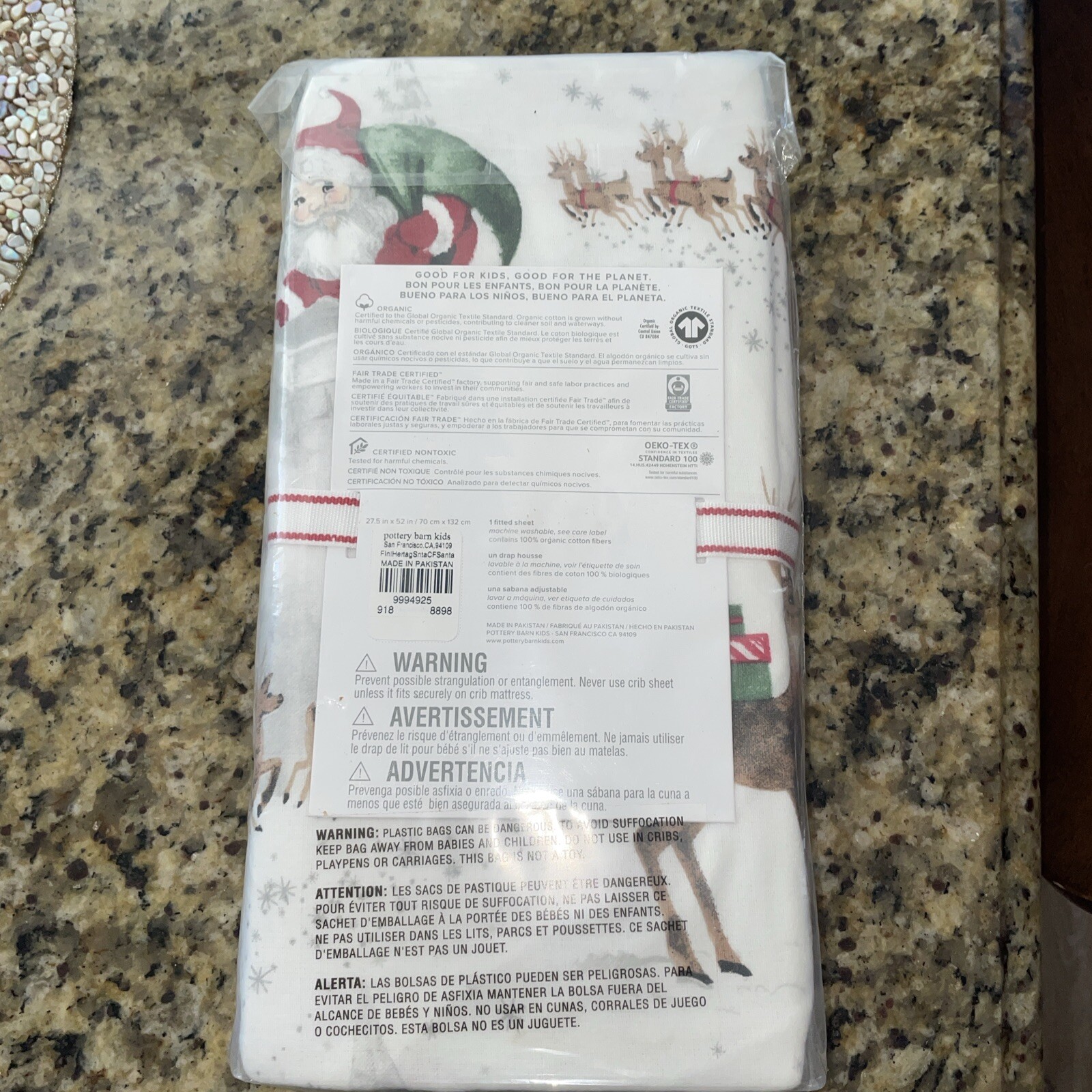New Pottery Barn Kids Heritage SANTA Organic Flannel Crib Fitted Sheet Christmas
