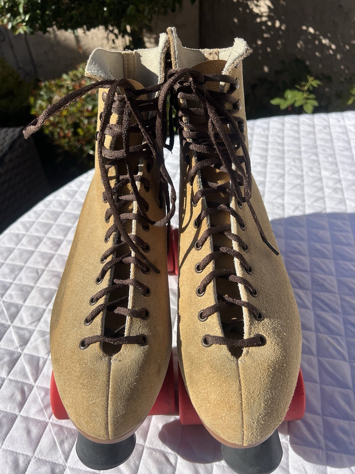 как выглядит Riedell Womens Quad Roller Skates Beige Suede Leather 135 Fx 31569 Made In USA фото