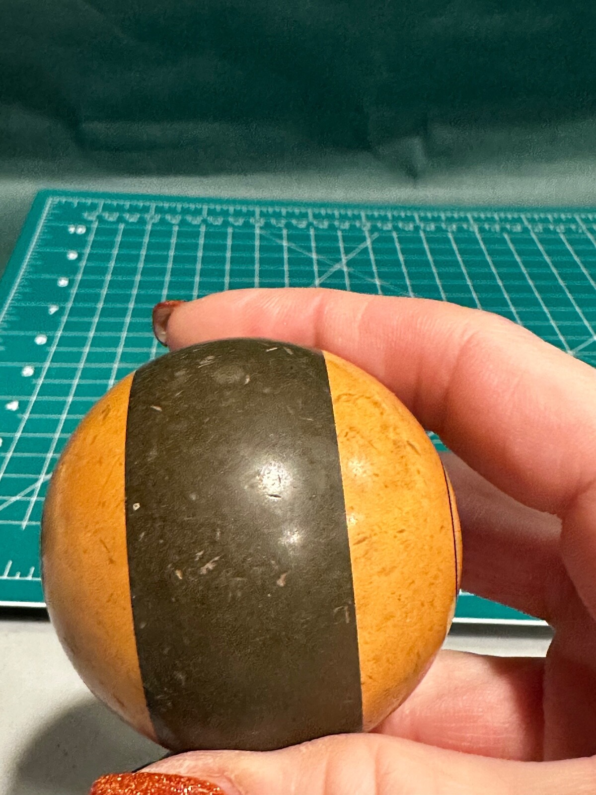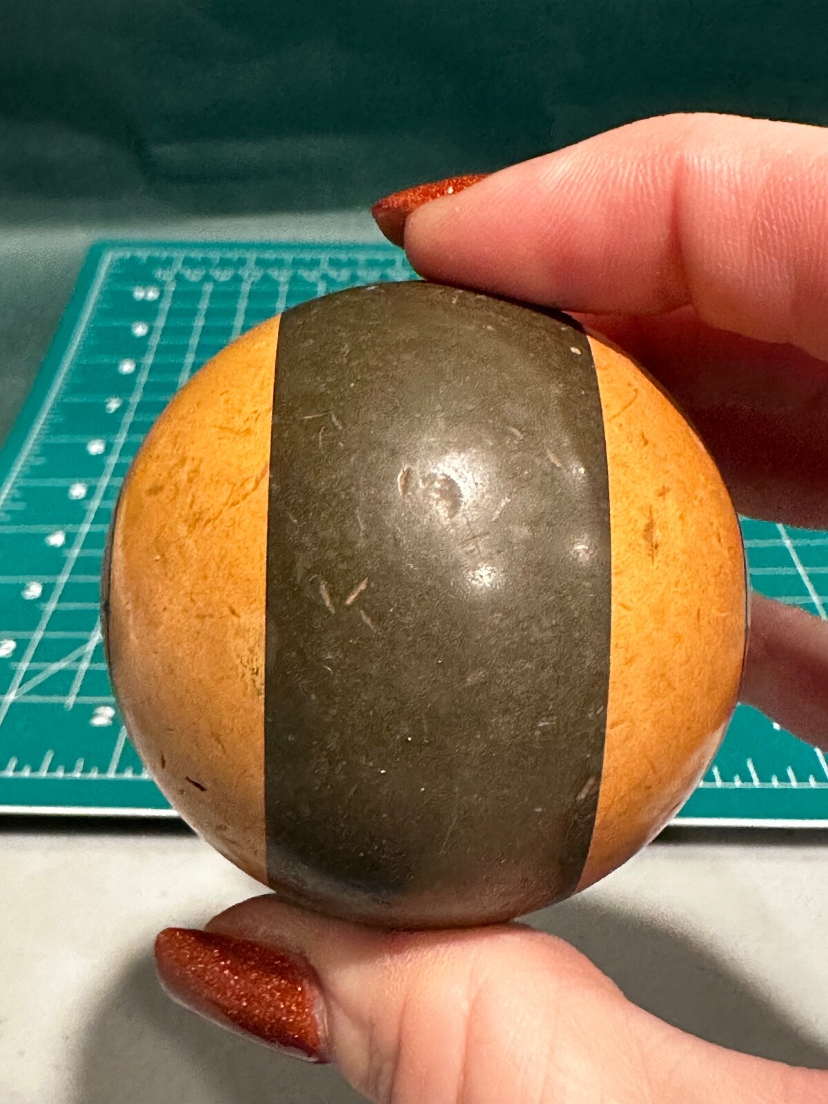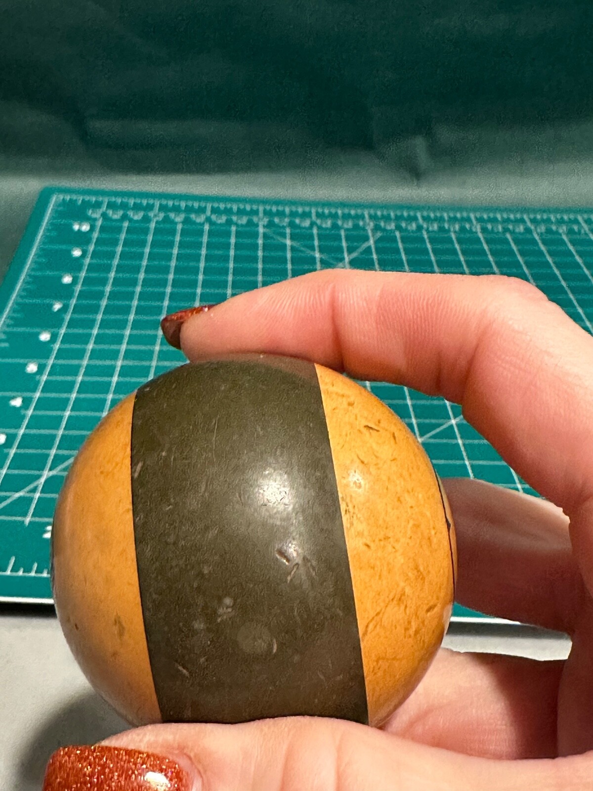 как выглядит Vintage Antique Billiard Pool Ball STRIPE 10 TEN Art Deco DARK GREEN CREAM фото