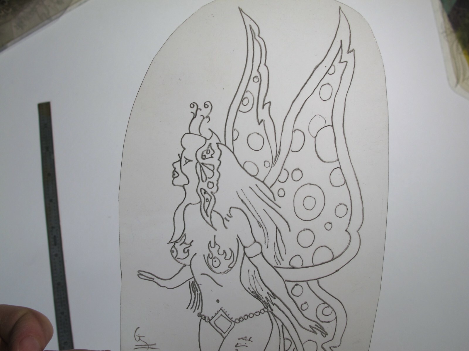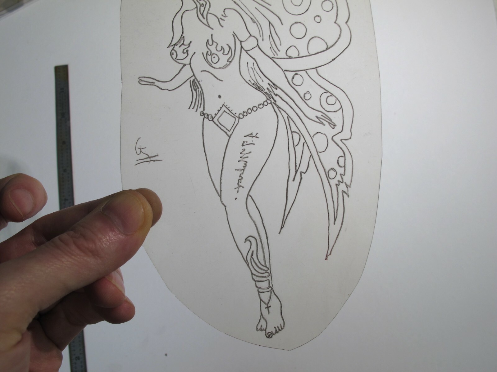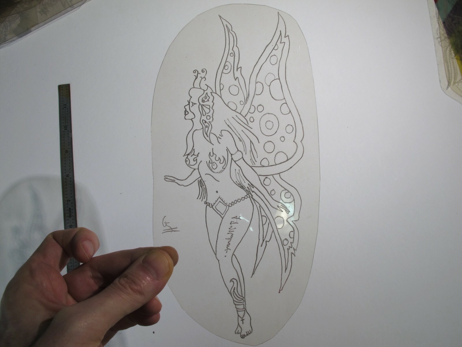 vtg 1960s 1970s Tattoo acetate stencil Tattoed Fairy Girl LG. signed