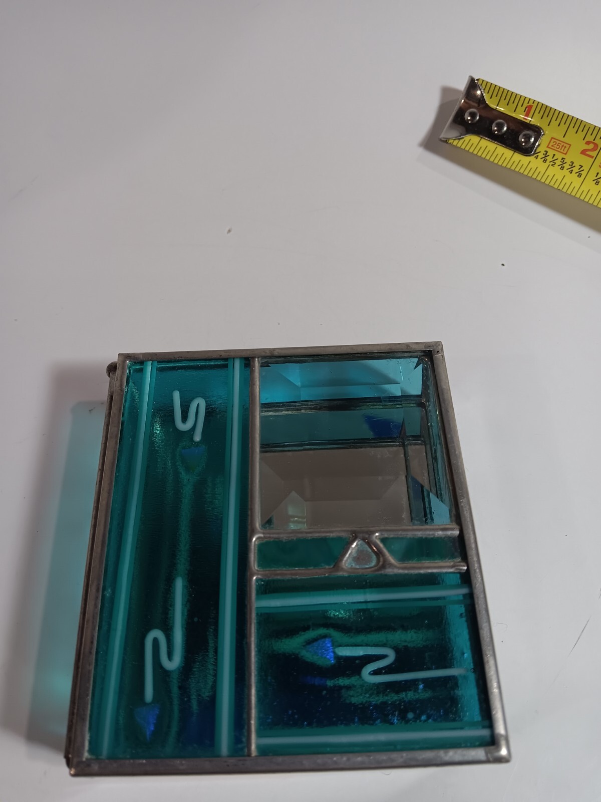 как выглядит VTG Handmade Leaded Stained Glass Trinket Jewelry Box Signed фото
