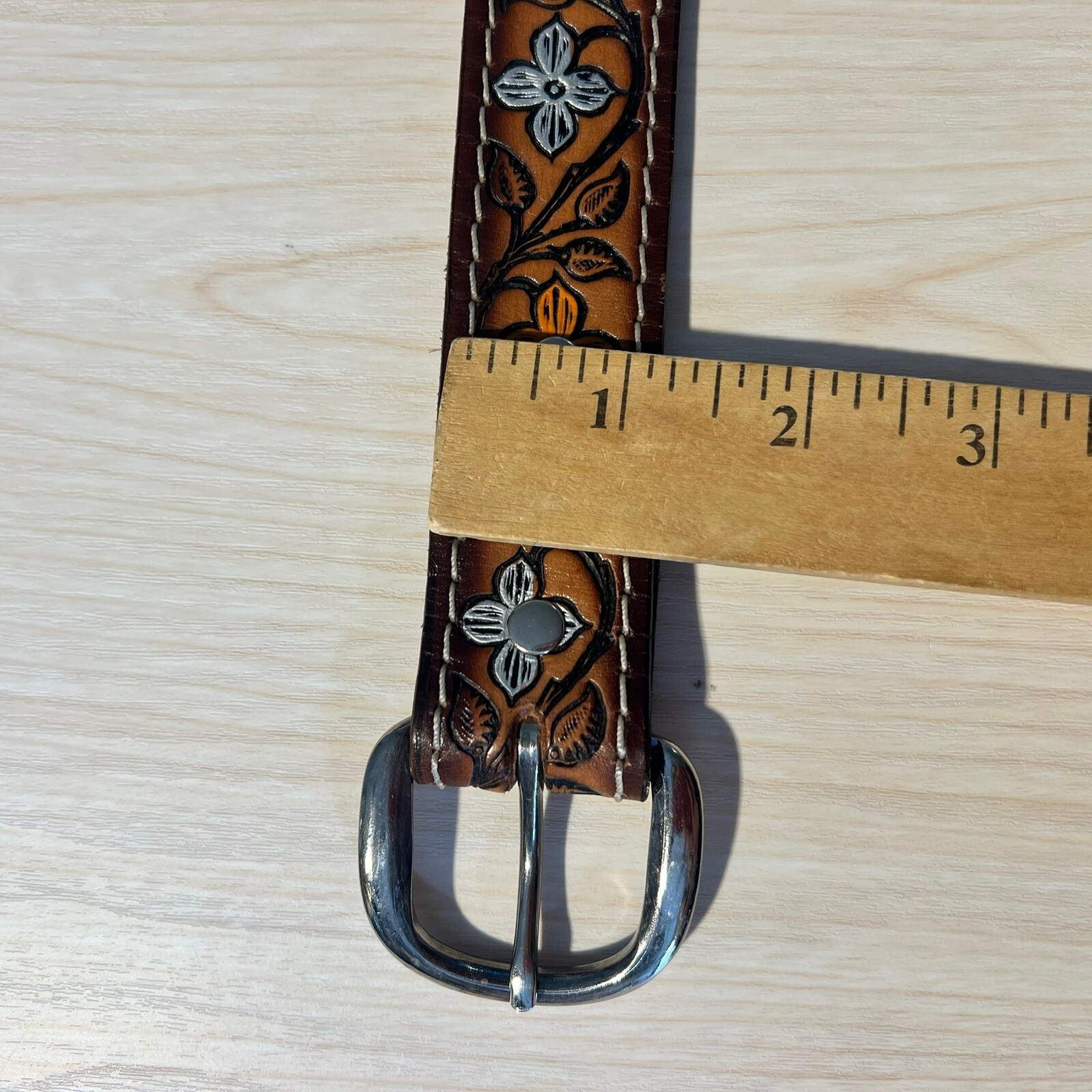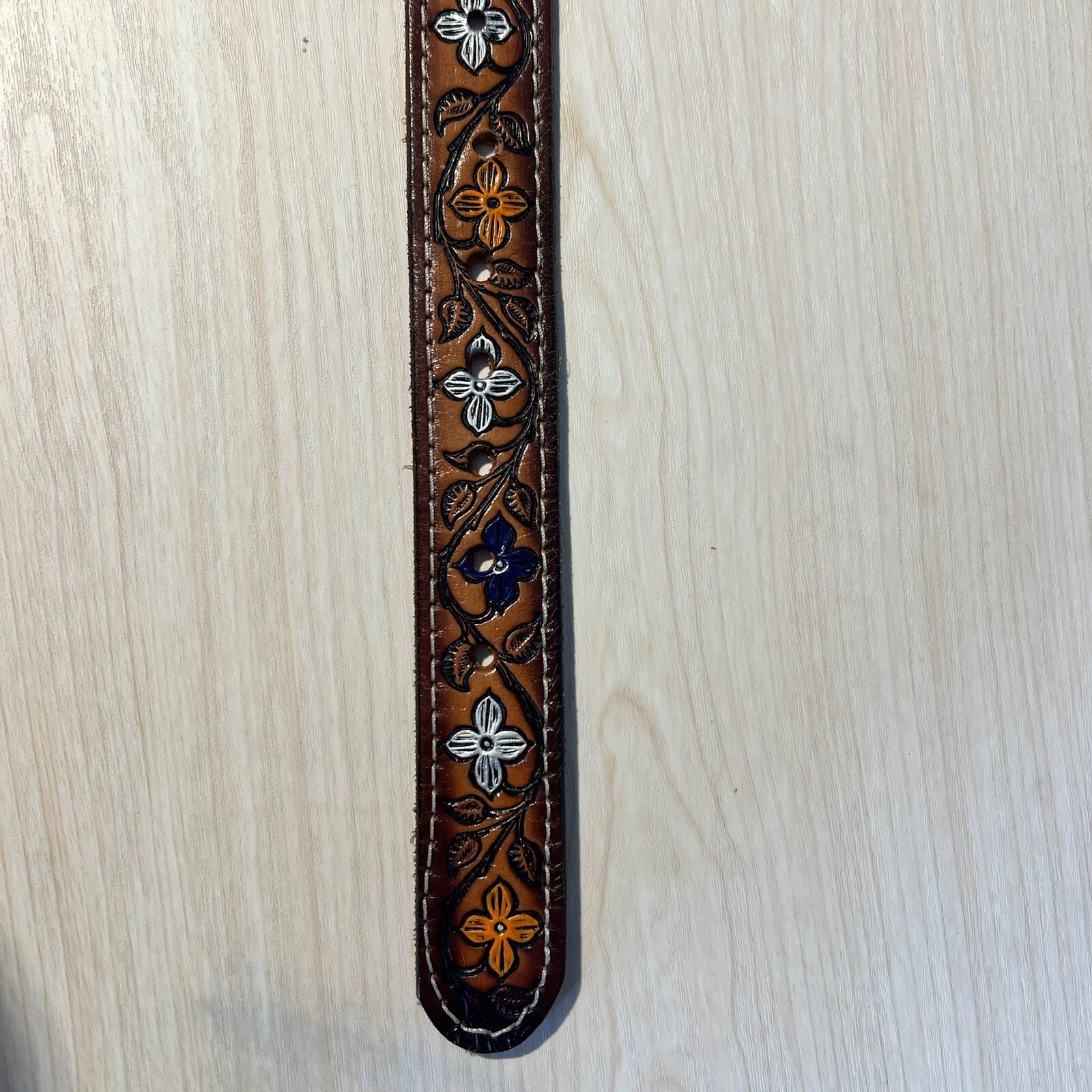 как выглядит Womens Belt Hand Painted 34-36 Floral Tooled Cowhide Leather Western Rodeo JANE фото