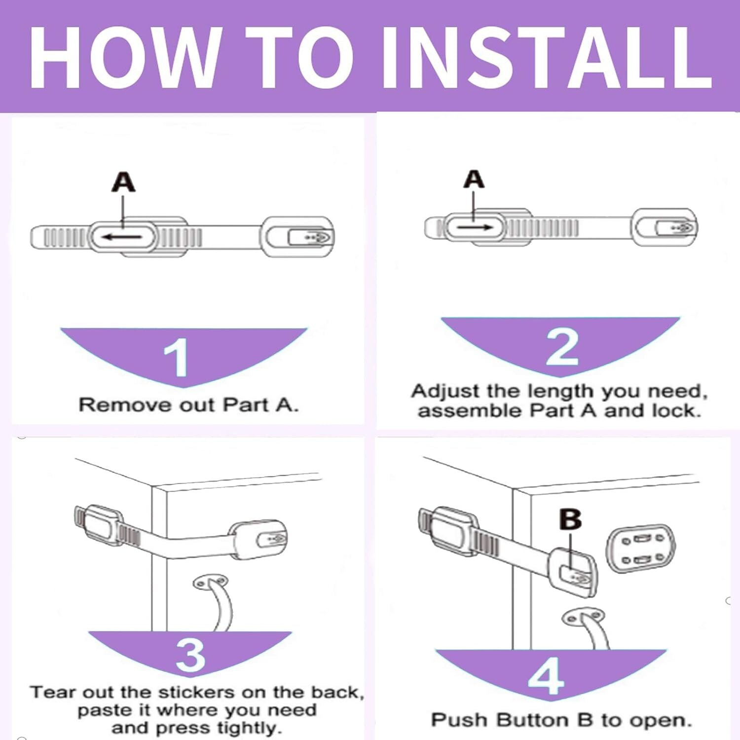 Includes 2:: cabinet locks with 5 inch child safety straps