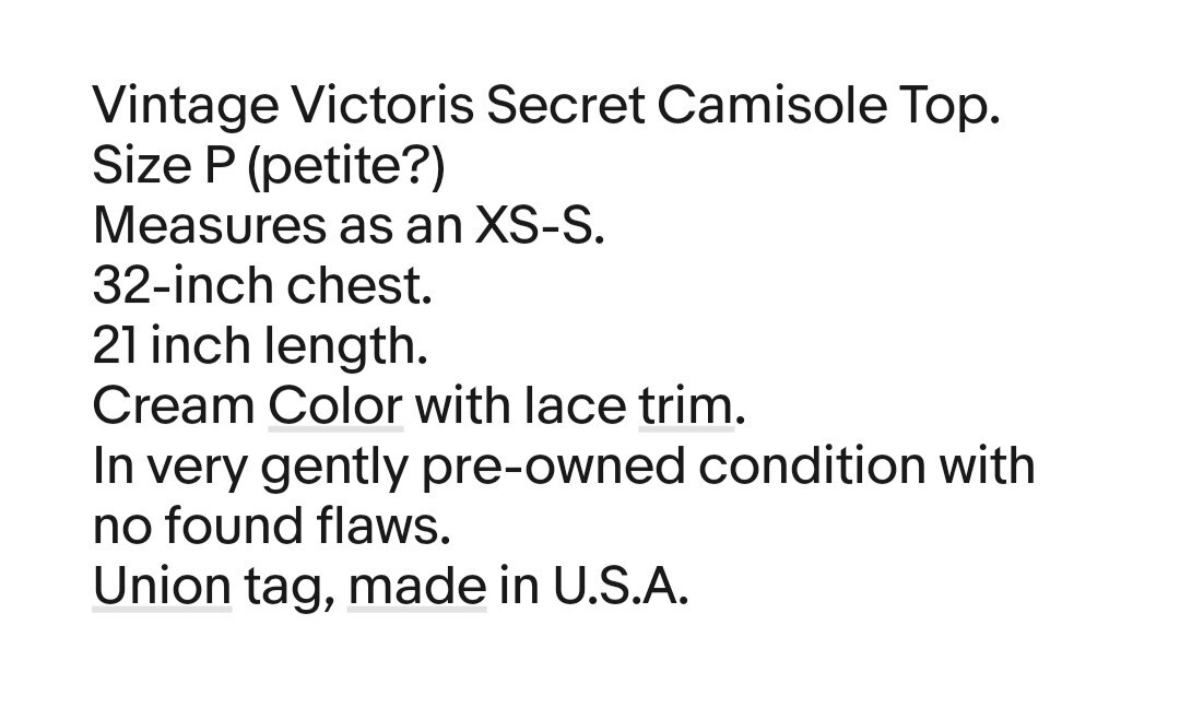 как выглядит Vintage Victoria s Secret Sz P Small Camisole Top Union Tag Gold Label Lace Trim фото