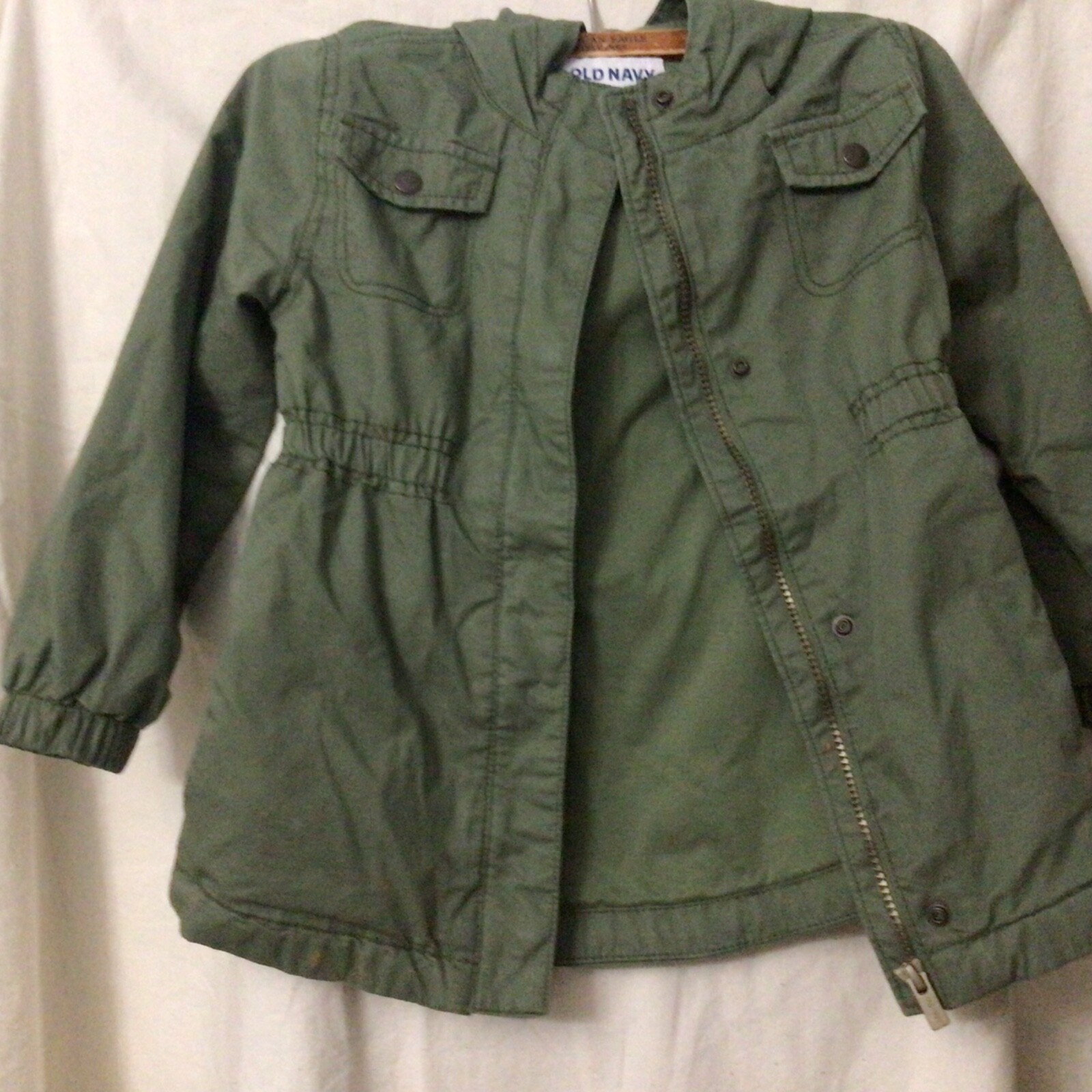 Old Navy Kids Jacket in khaki Green Hooded Sz 5T, Pre-own good condition