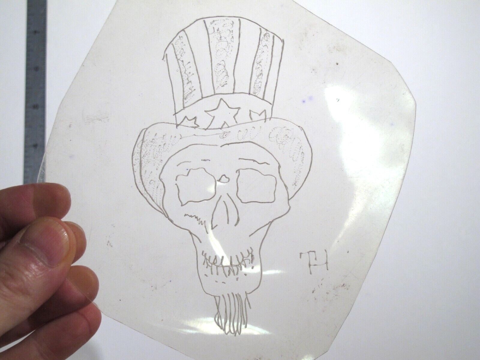 vtg 1960s 1970s Tattoo acetate stencil Uncle Sam Deadhead Skull signed SK5