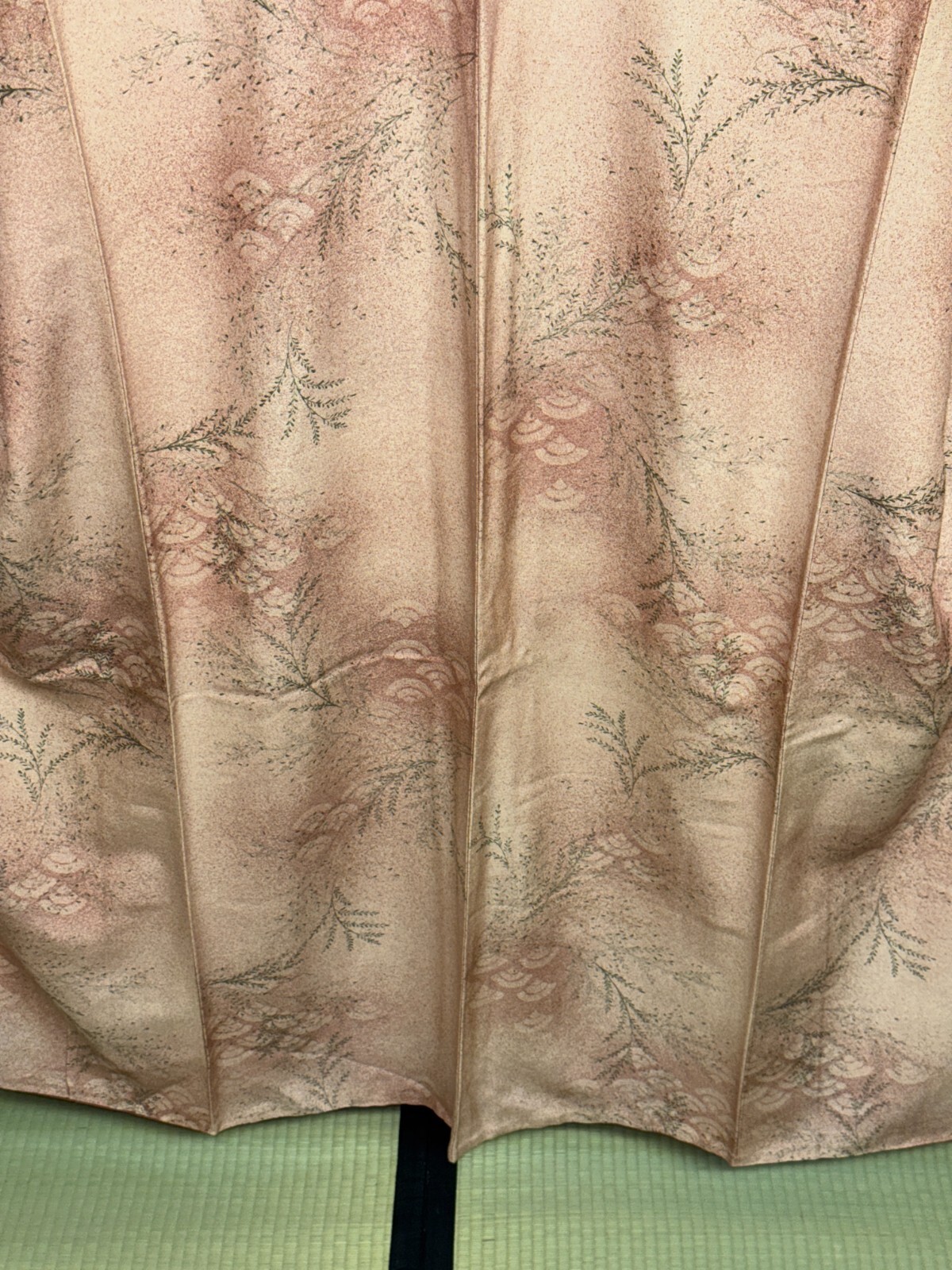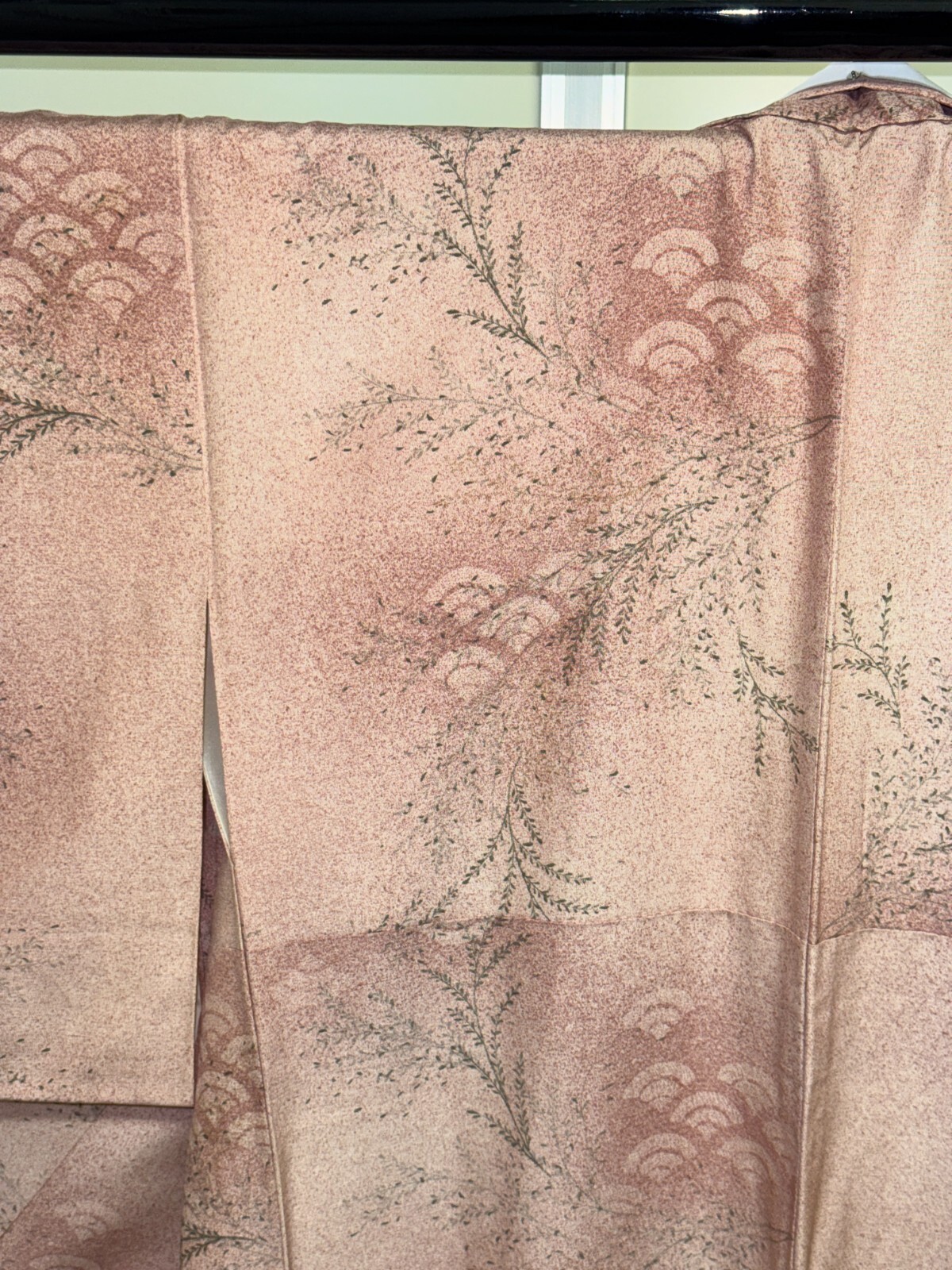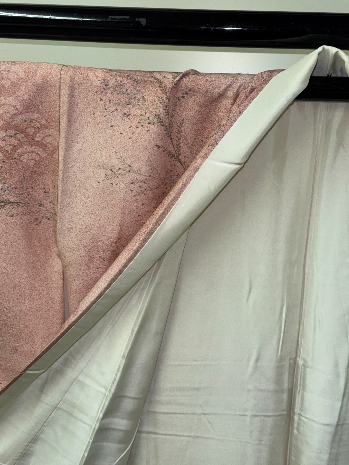 Japanese Vintage Kimono Silk pink Expensive Tradition grass branch Heigh 60.62in