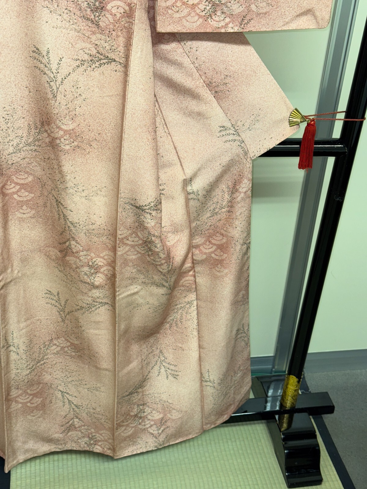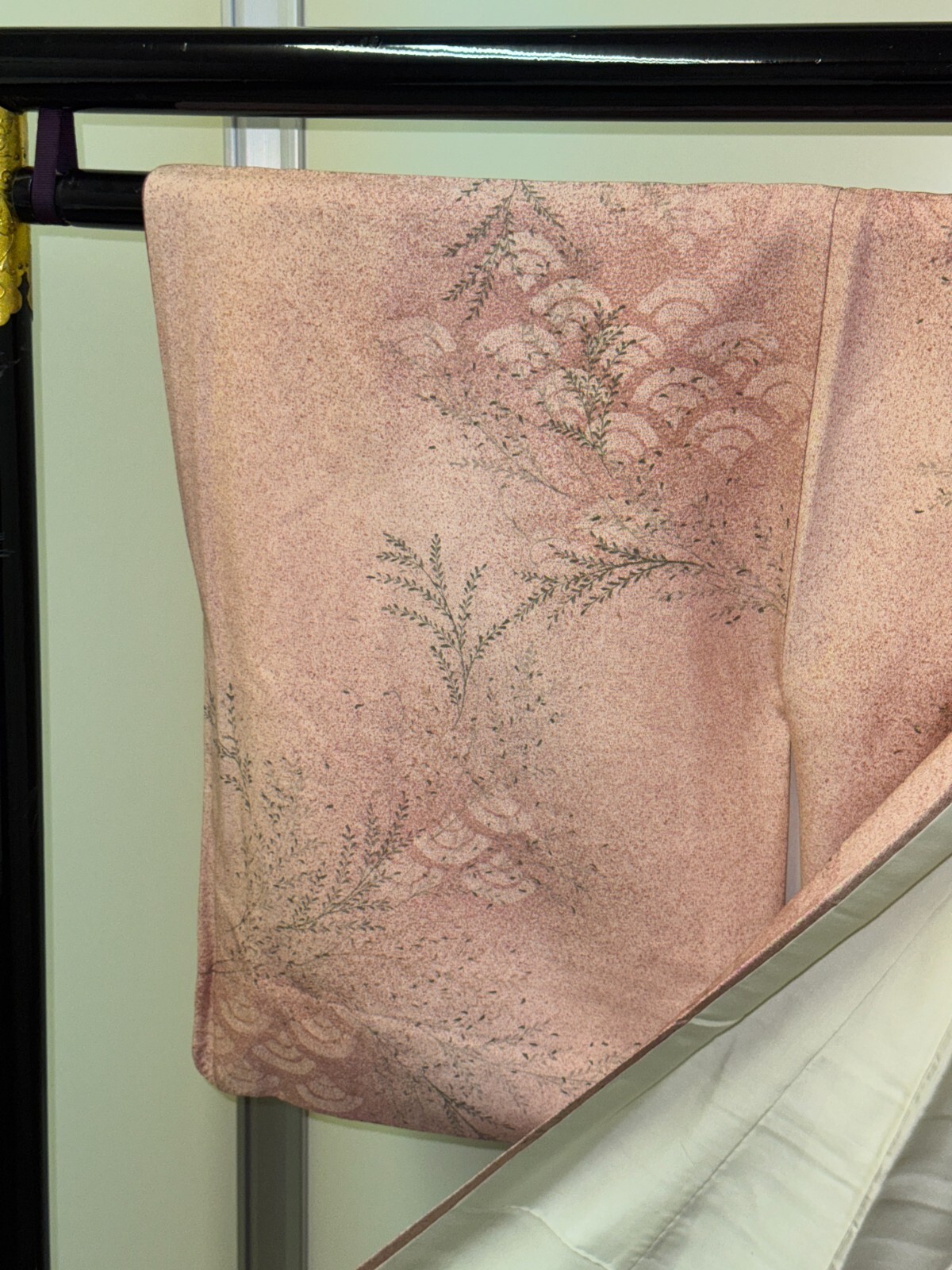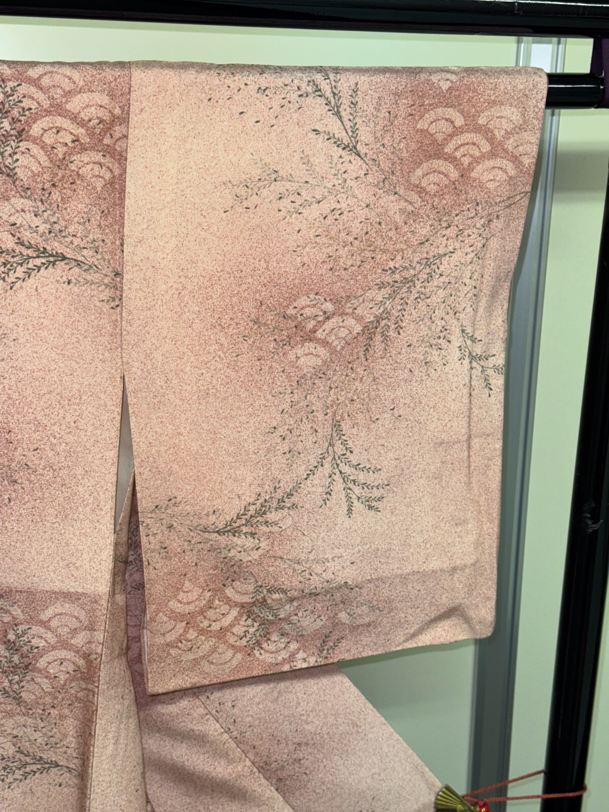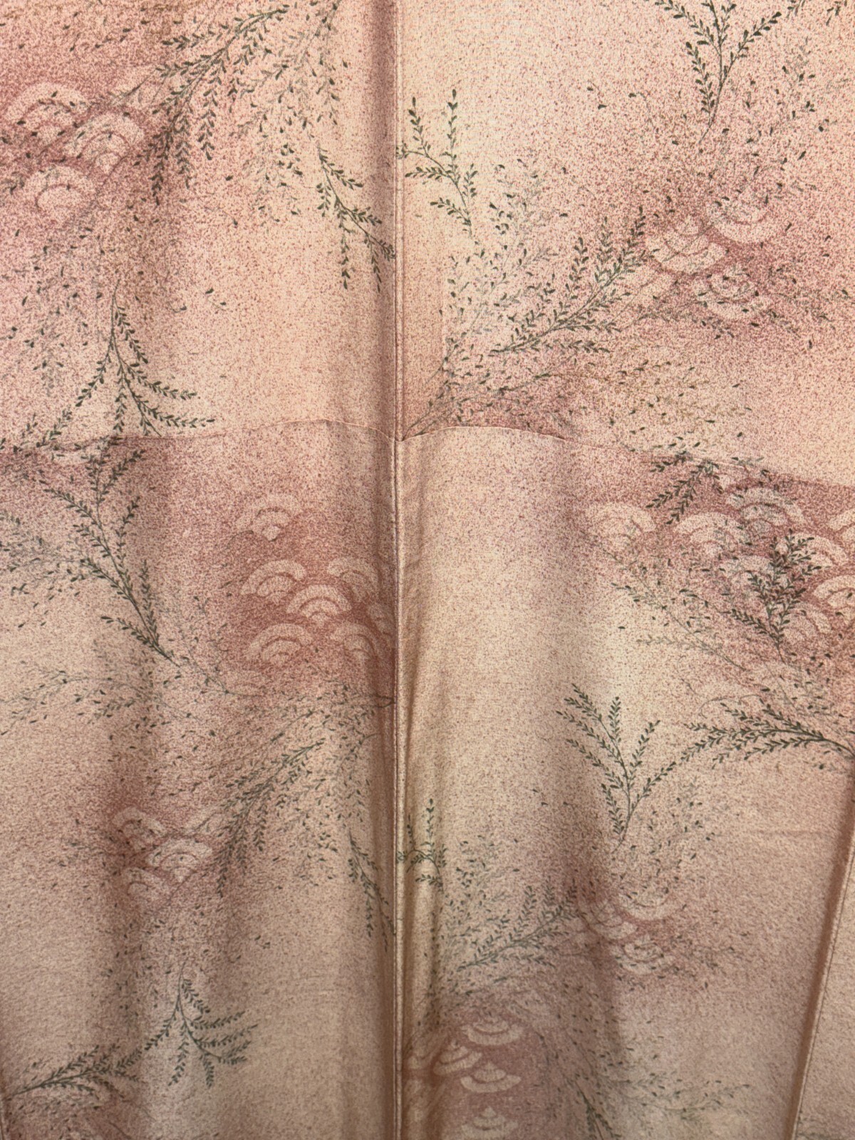 Japanese Vintage Kimono Silk pink Expensive Tradition grass branch Heigh 60.62in