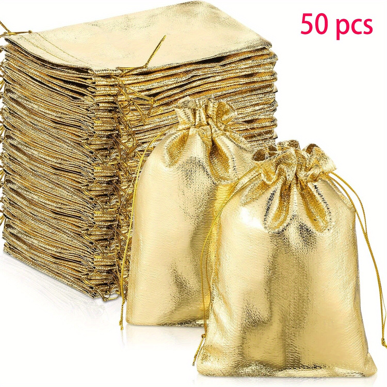 50Pcs Golden Drawstring Gift Bags 5x7 Inch Jewelry Pouches Wedding Birthday Xmas
