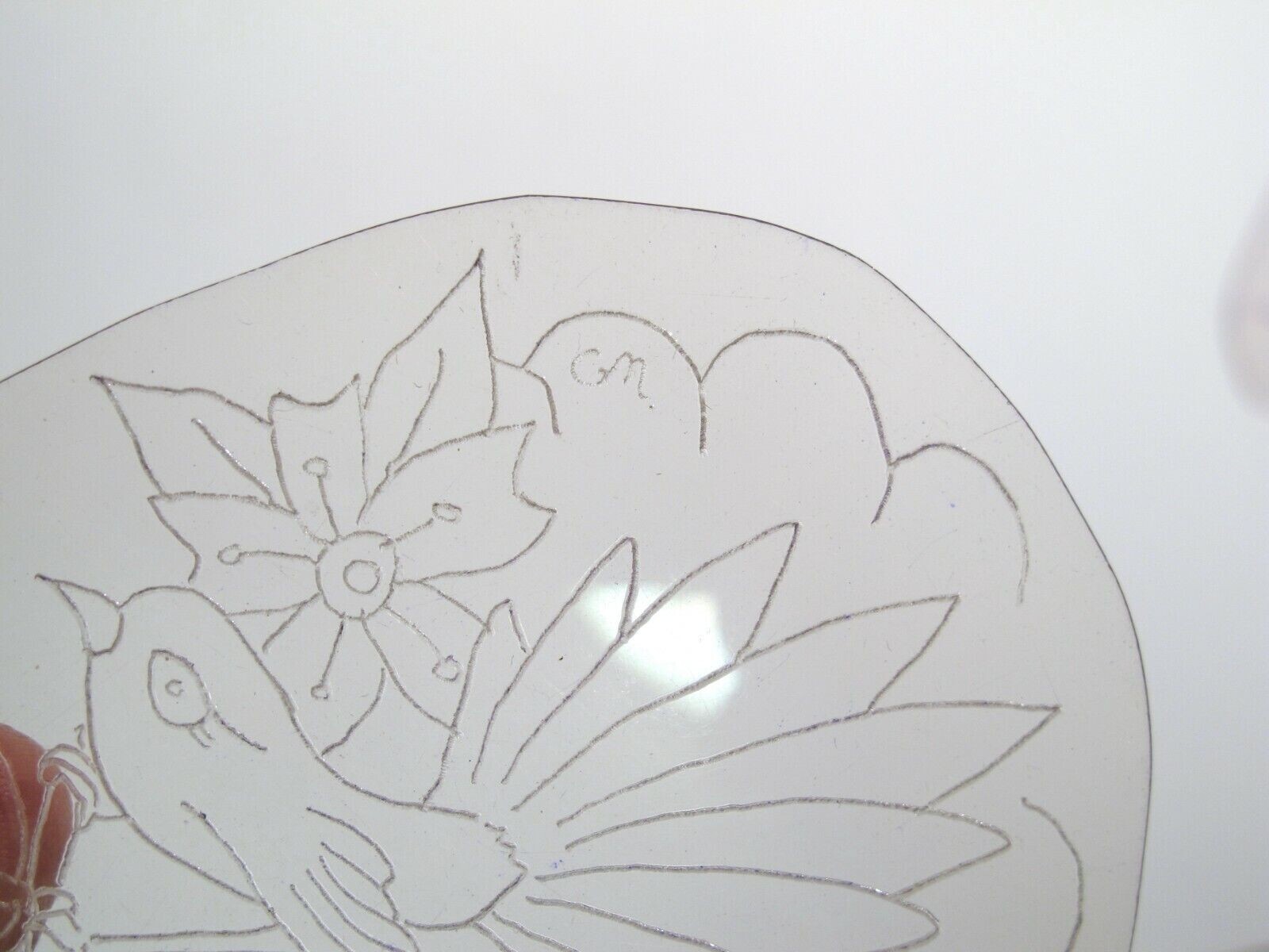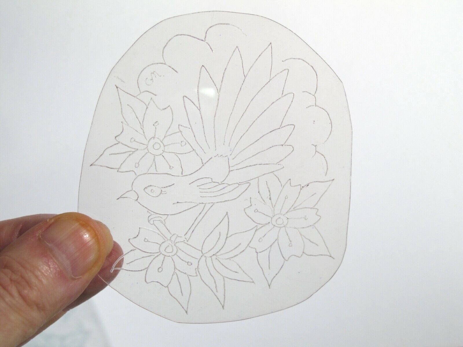 vtg 1960s 1970s Tattoo Flash acetate stencil Bird 3 flowers and cloud signed BR1