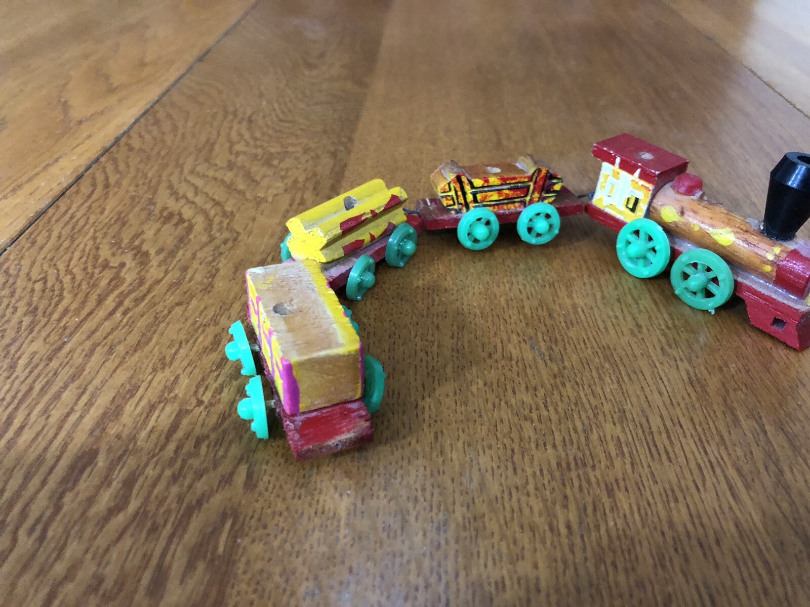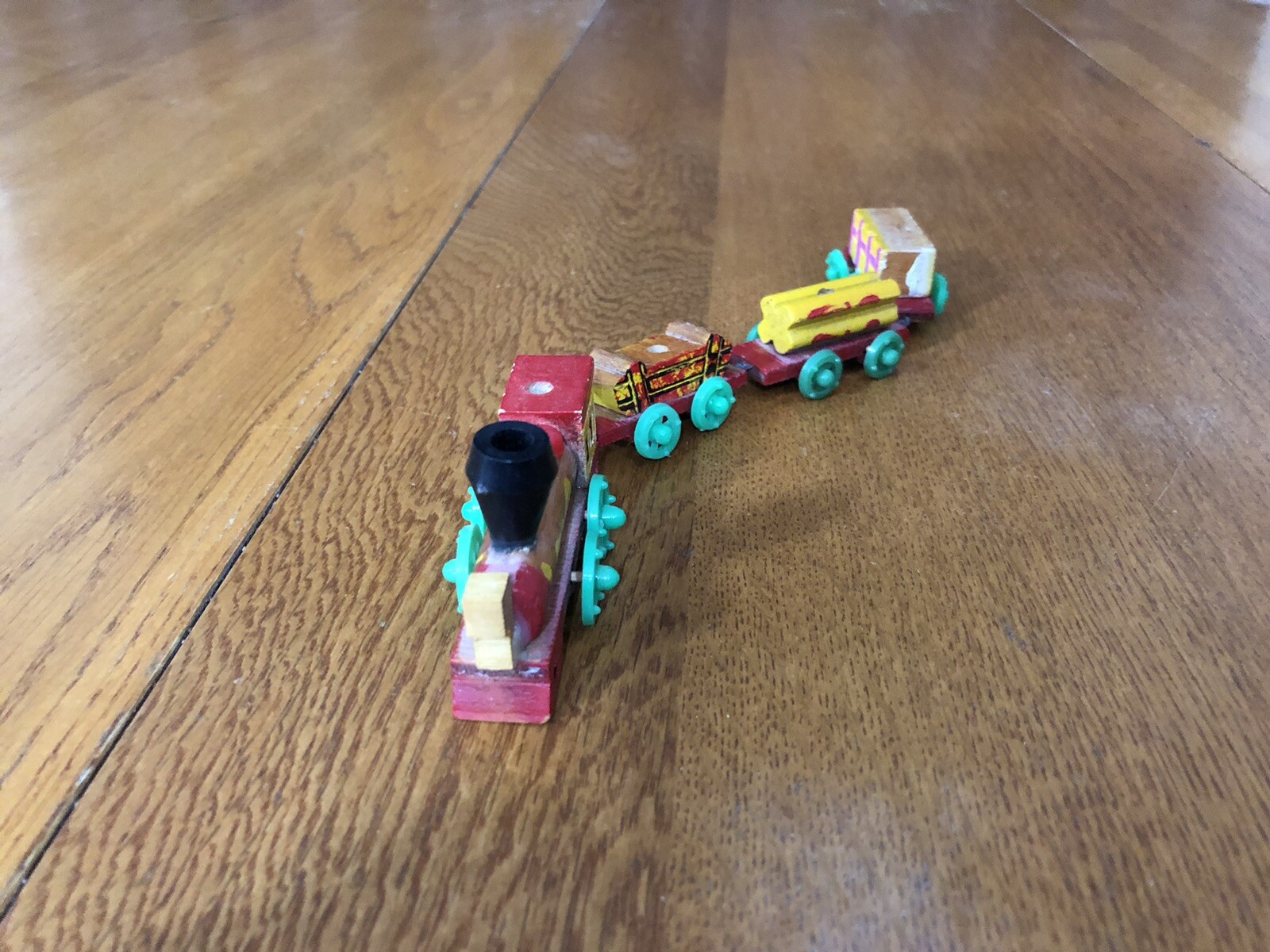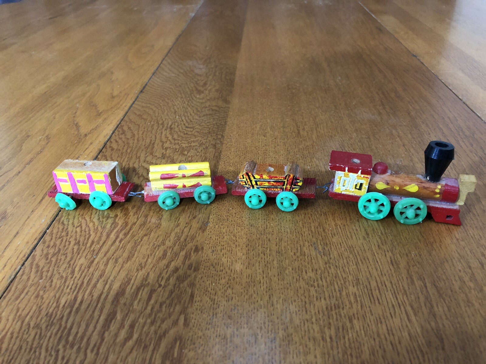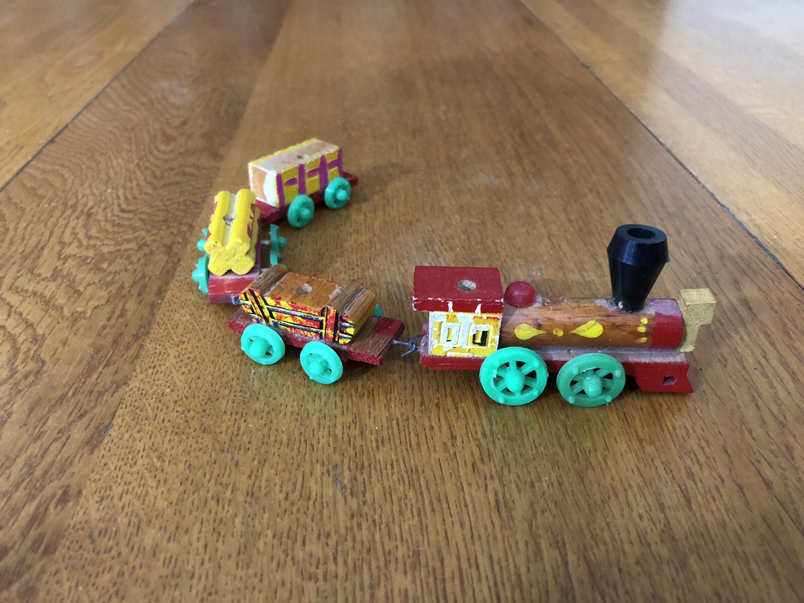 VINTAGE MINIATURE WOODEN CONNECTING TRAIN ENGINE CABOOSE 2 CARS DECORATIVE TOY