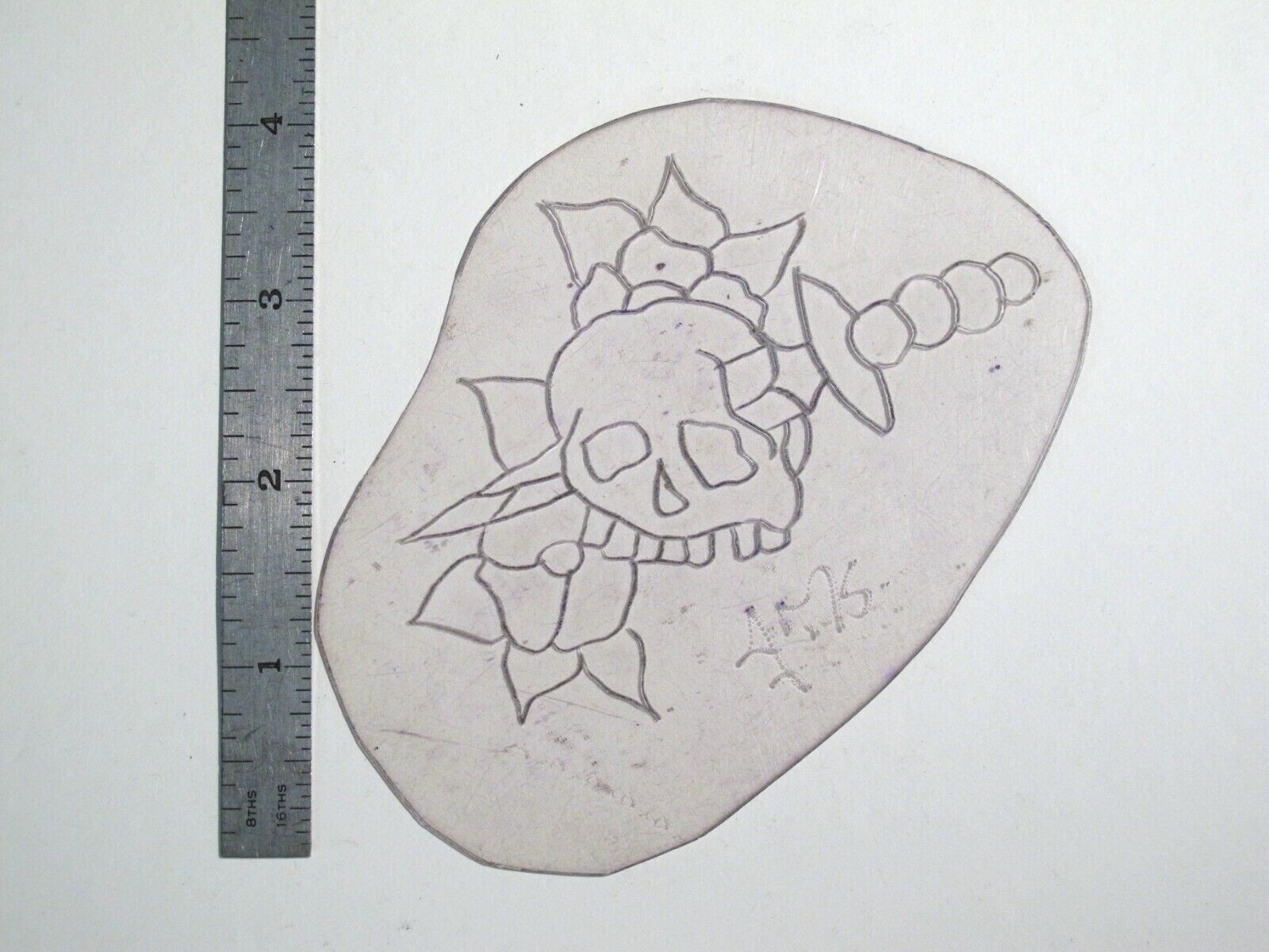 vtg 1960s 1970s Tattoo acetate stencil Dagger Through Skull and Flowers sign SK4