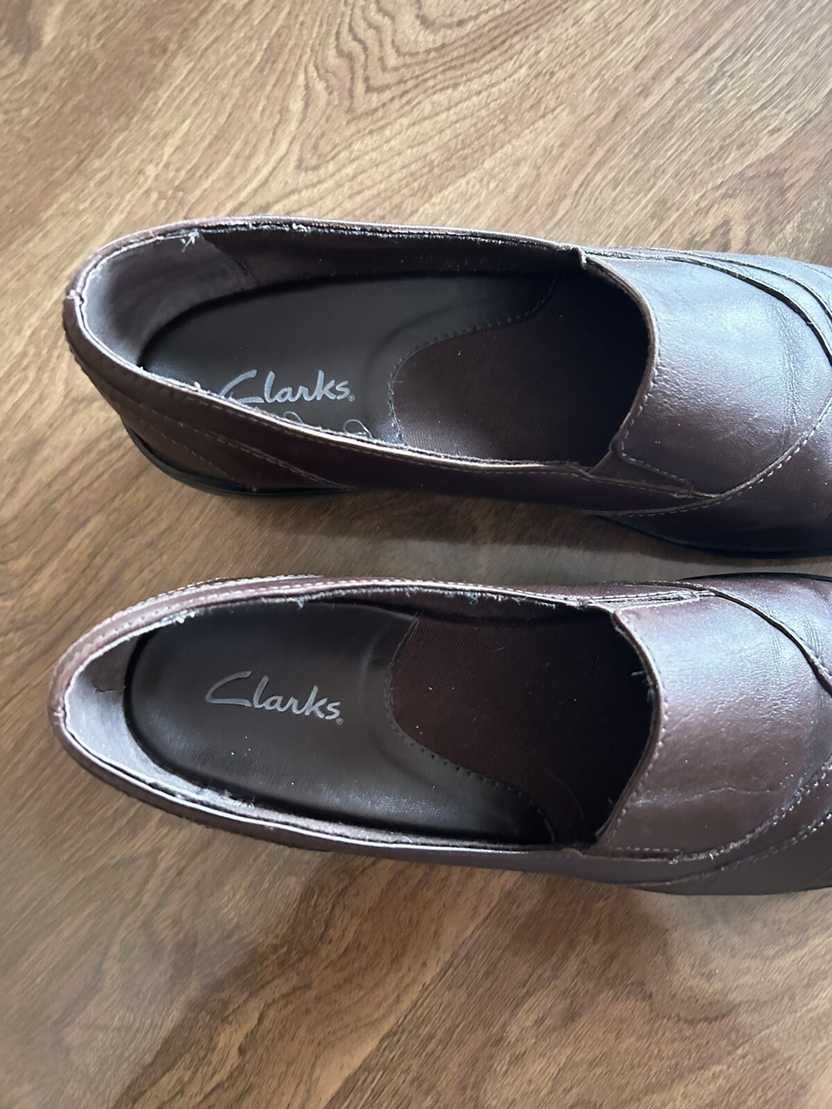 как выглядит Clarks Womens Size 8 M Brown Slip On Leather Comfort Shoes Casual Loafers фото