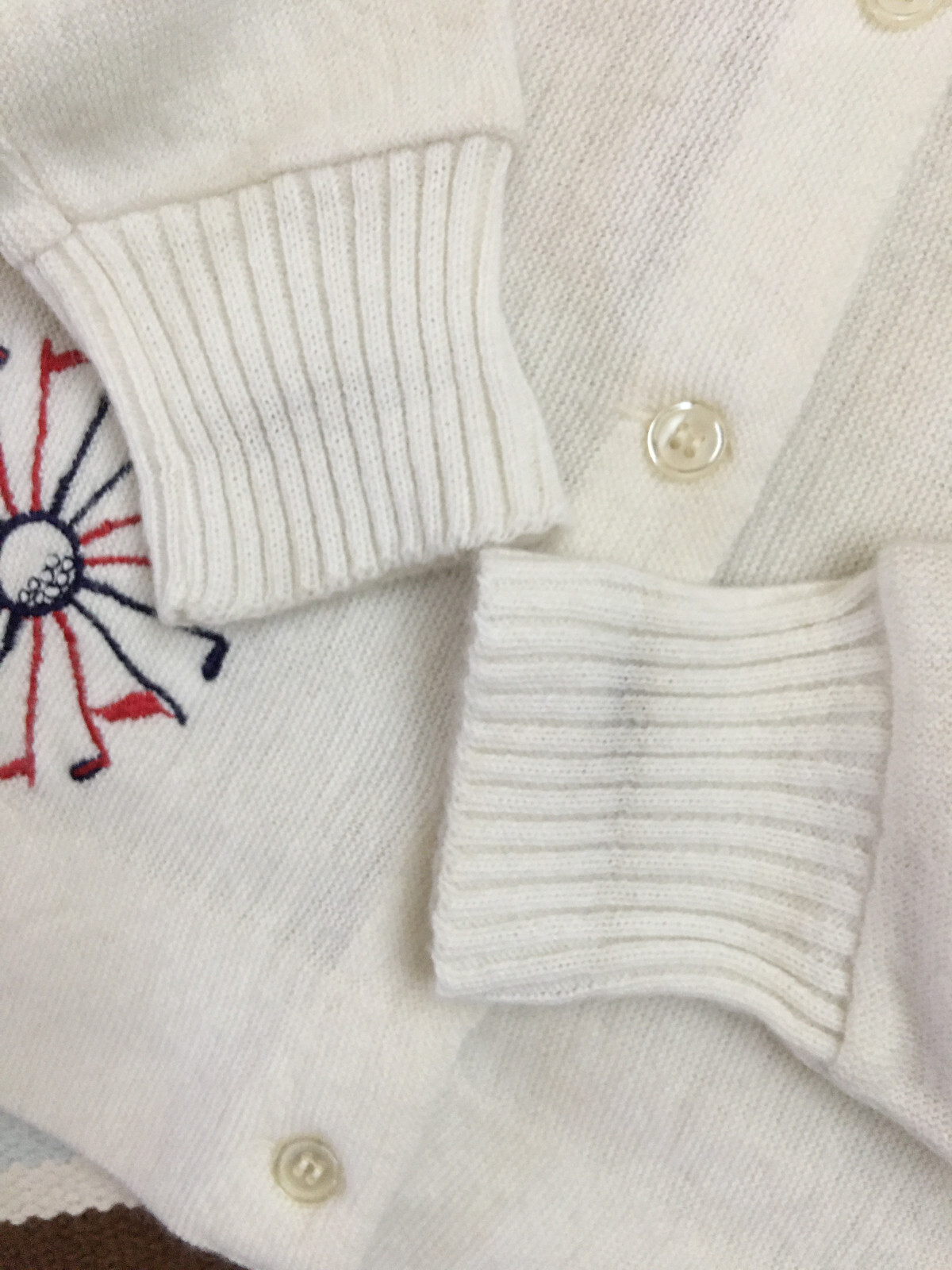 как выглядит Vintage White 60s 70s Mod Embroidered Haymaker Golf Sweater Cardigan Button-Up фото