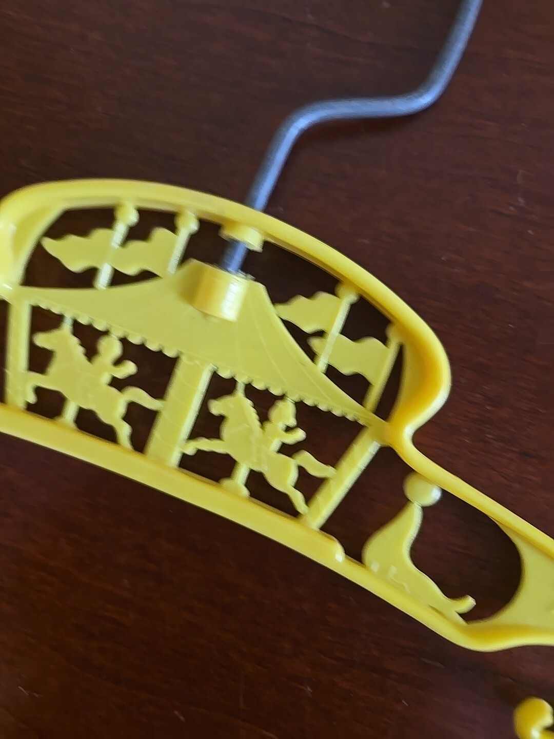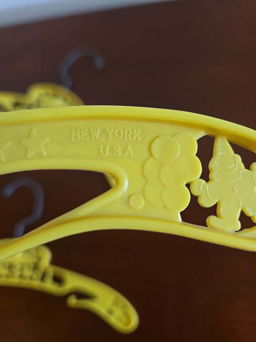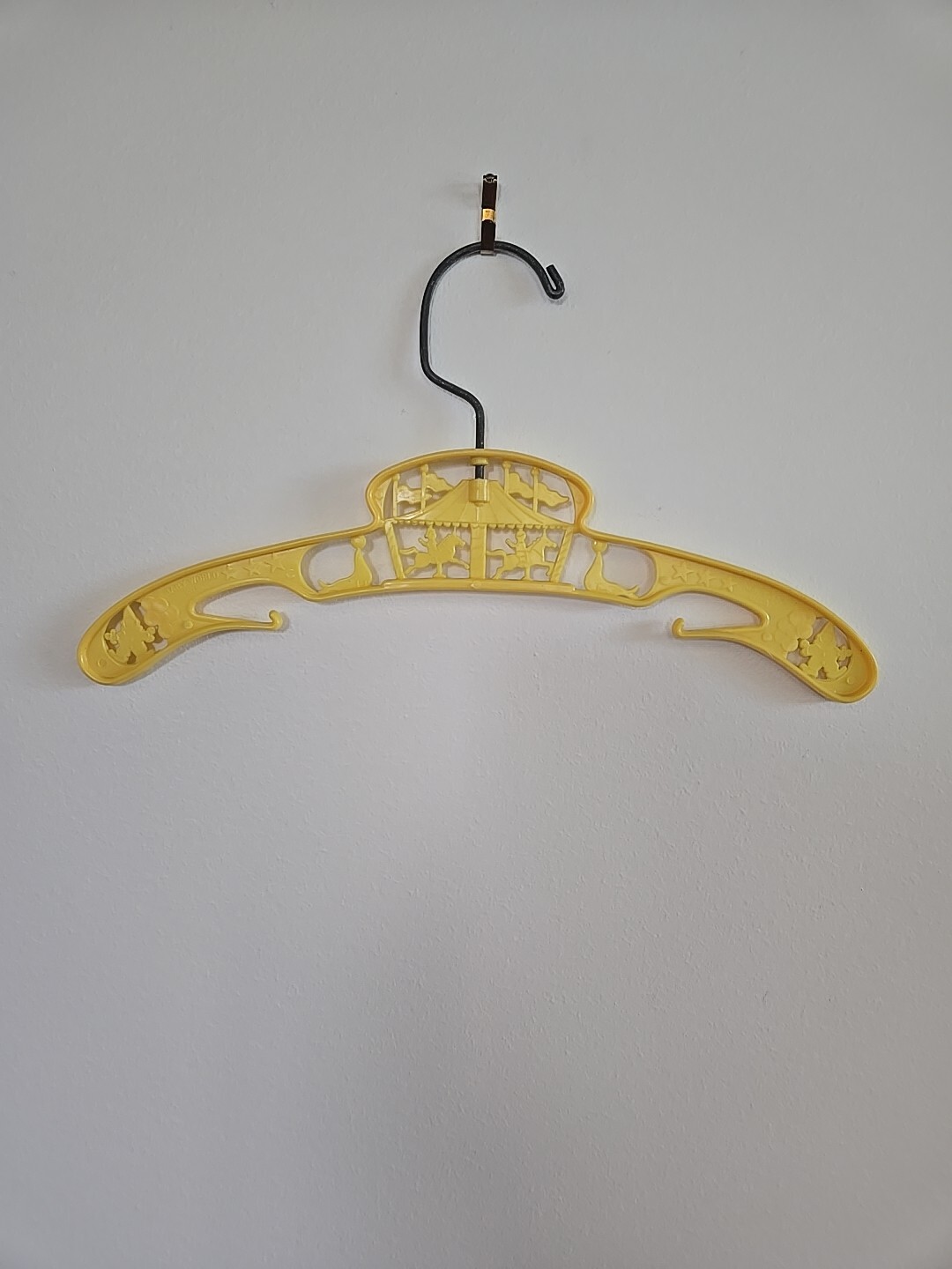 Set of 3 Baby Yellow Plastic Child's Clothes Hanger Vintage Carousel Clowns