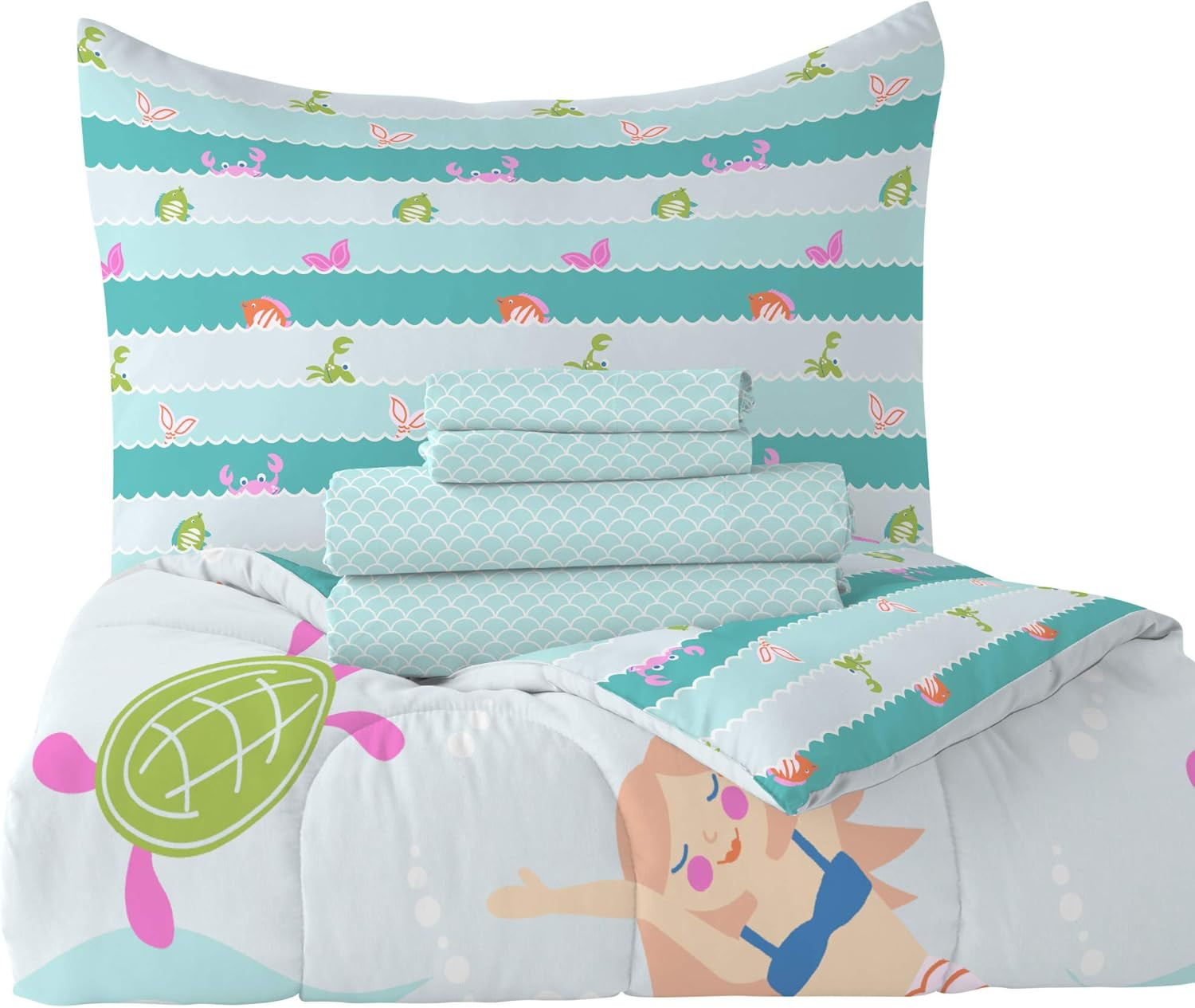 Included Components: 1 Comforter, 1 Sham, 1 Flat Sheet, 1 Fitted Sheet, 1 Pillowcase