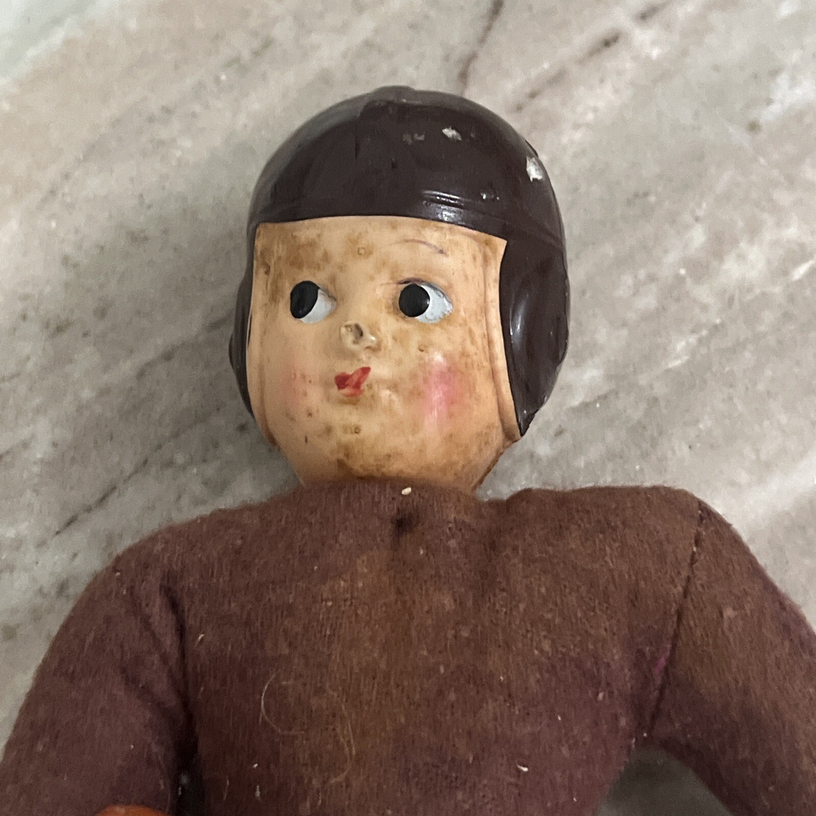 Vintage Celluloid Stuffed Football Player Doll 1930s Made in Japan